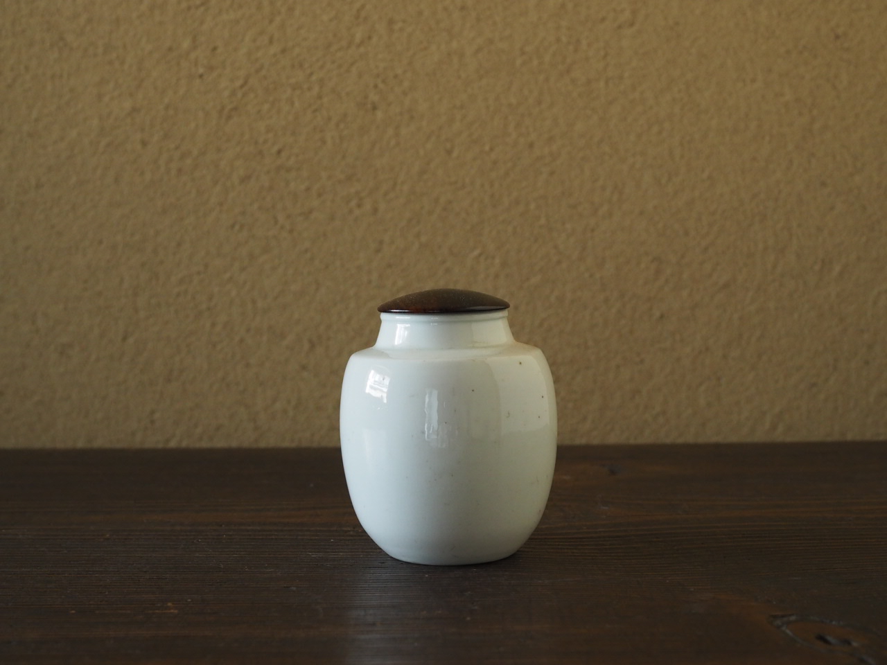 注文で造られたであろう瀬戸の肩衝茶入を模した、珍しい平戸焼の白磁茶入です。