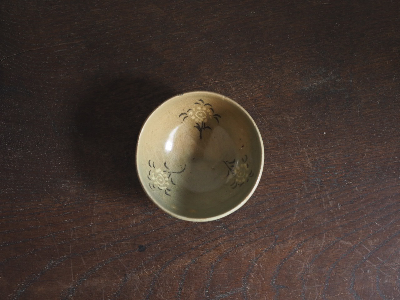 内側に白黒象嵌による菊文が、愛らしく三つ描かれているのも珍しくて愉しいです。