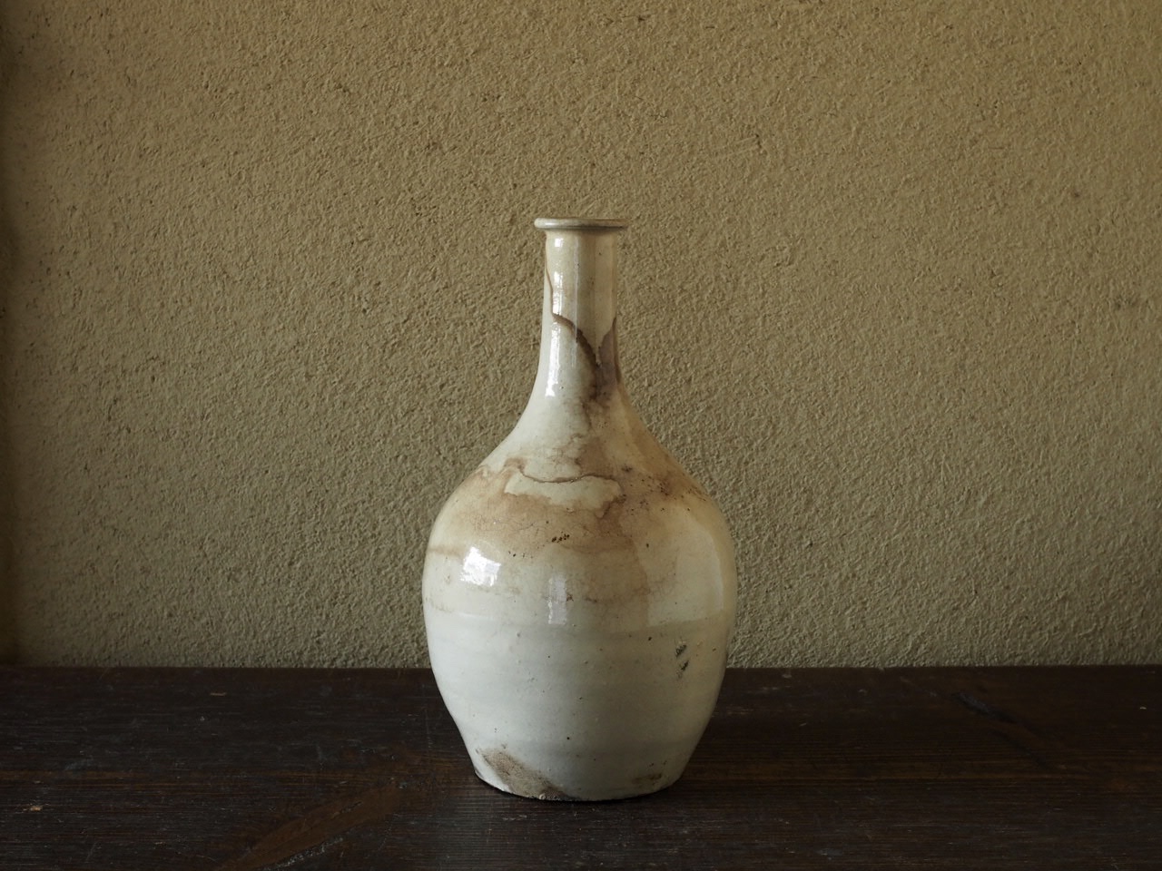 鶴首でシンメトリーの端正な姿に白味の強い白泥の肌が土物ながらどこか涼しげです。