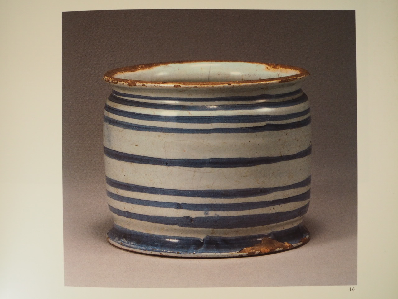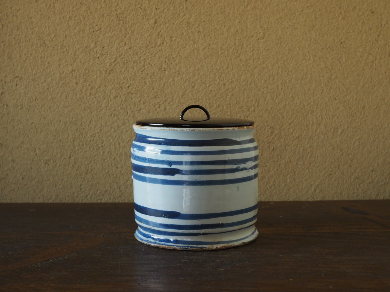 柔らかな鉛釉の白に染付の輪線文が爽やか、そして力の抜けた青の線と余白が実に軽妙です。