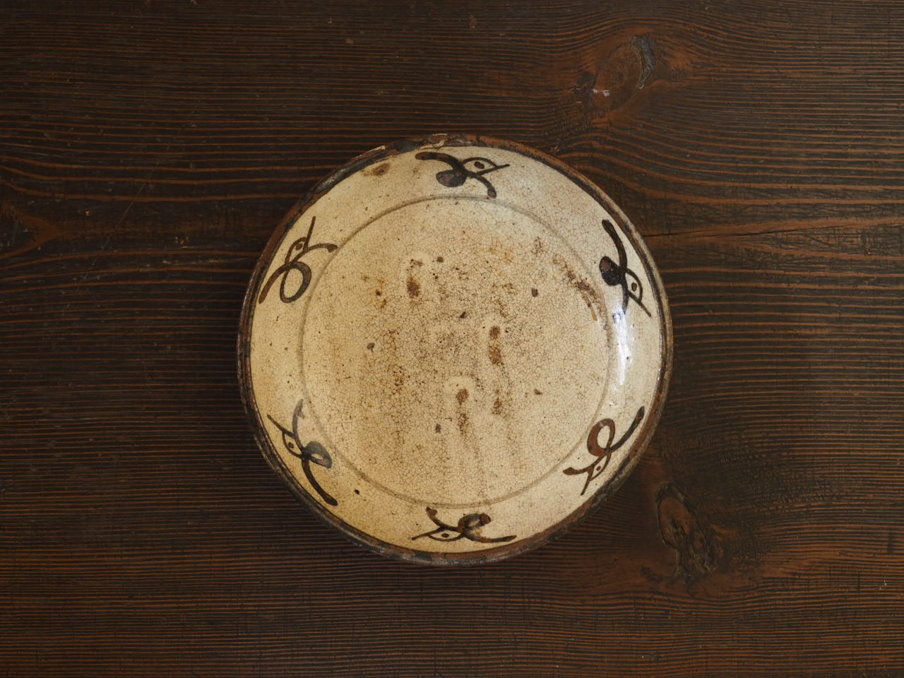 秦秀雄のいう馬の目皿風の皿で、馬の目の代わりに軽快にデザイン化された千鳥がならびます。