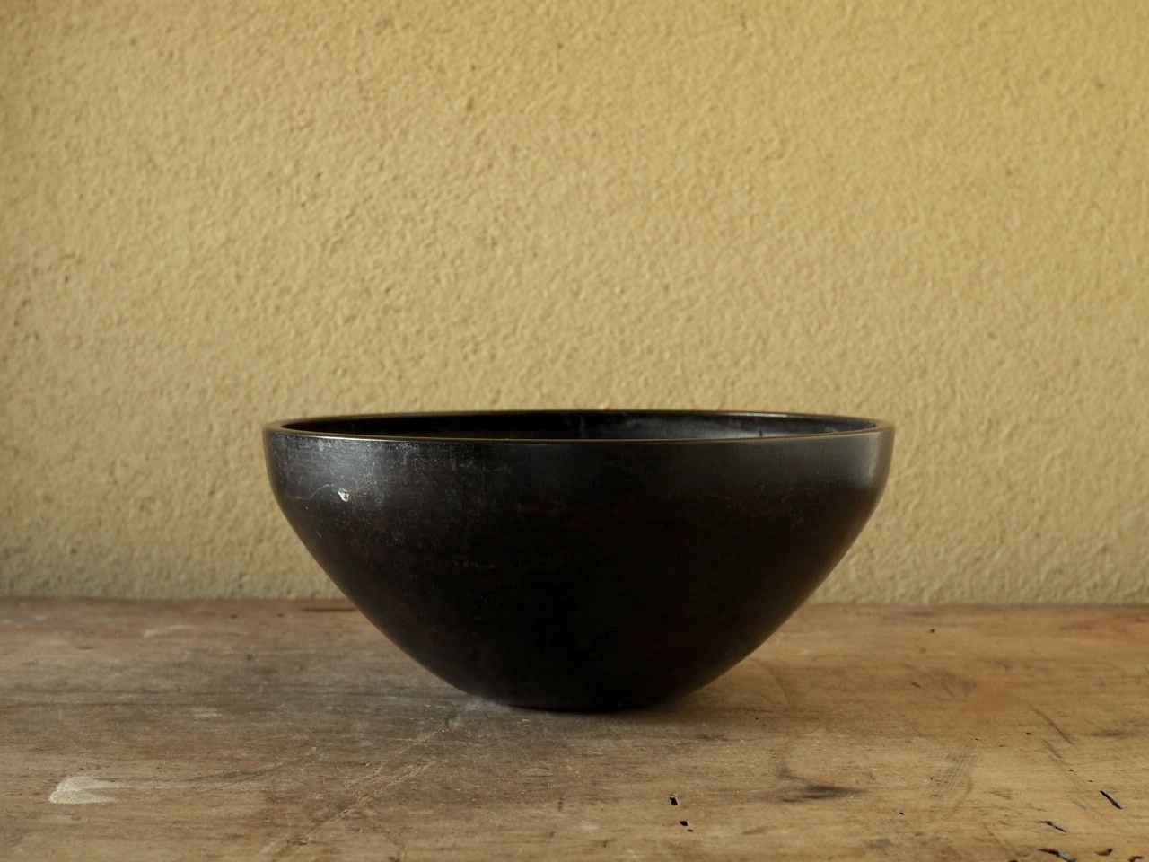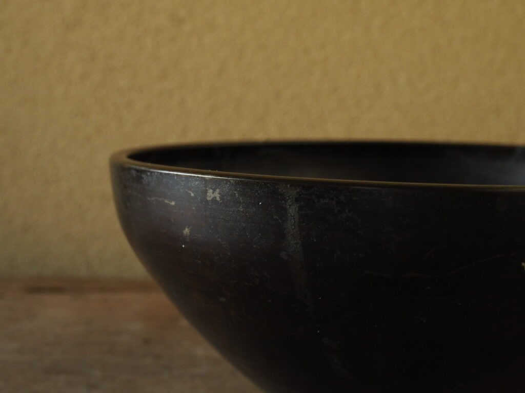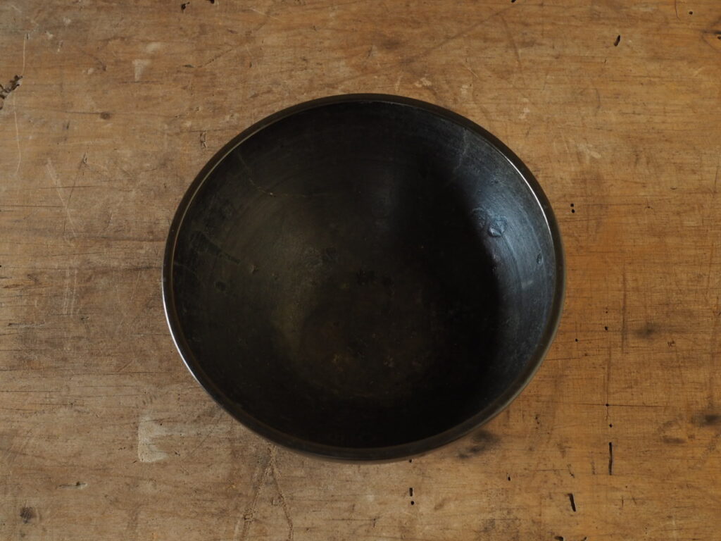 清らかな音が響き渡り、なんとも静かな心持ちになります。燻され黒光りした砂張独特の
