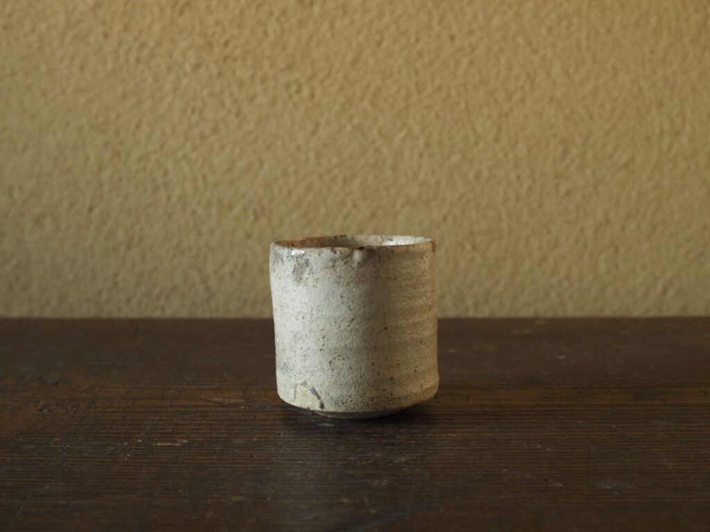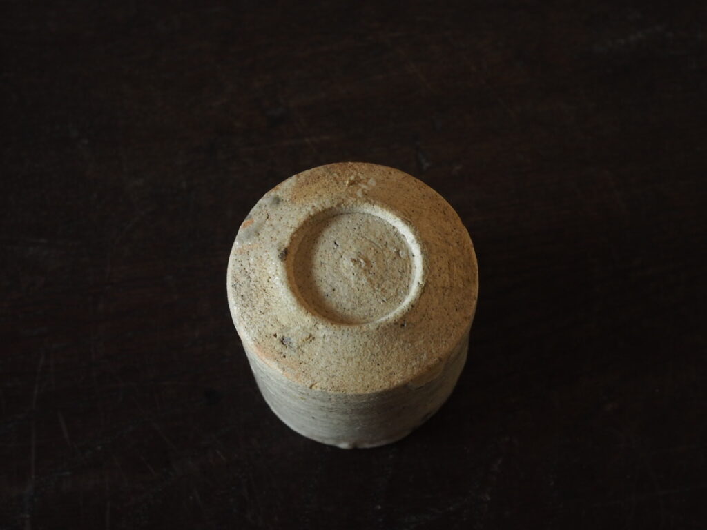 窯跡発掘のシンプルでオシャレな筒盃。やや高めのシルエットに細やかな轆轤目が美しく、薄く掛かった