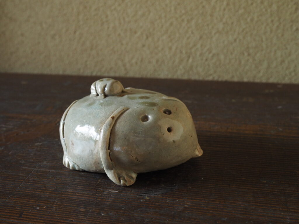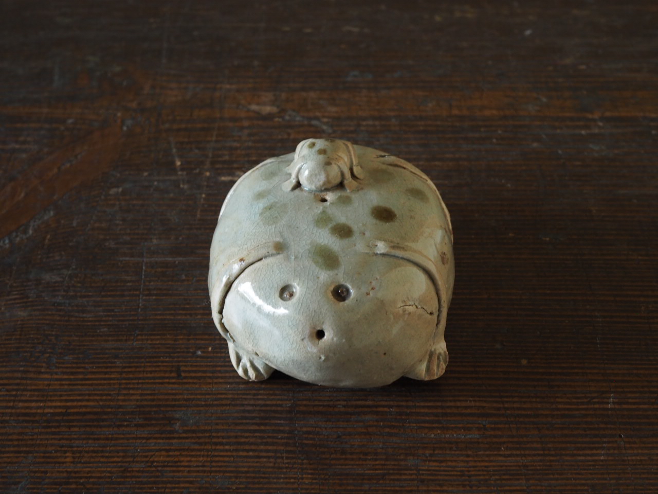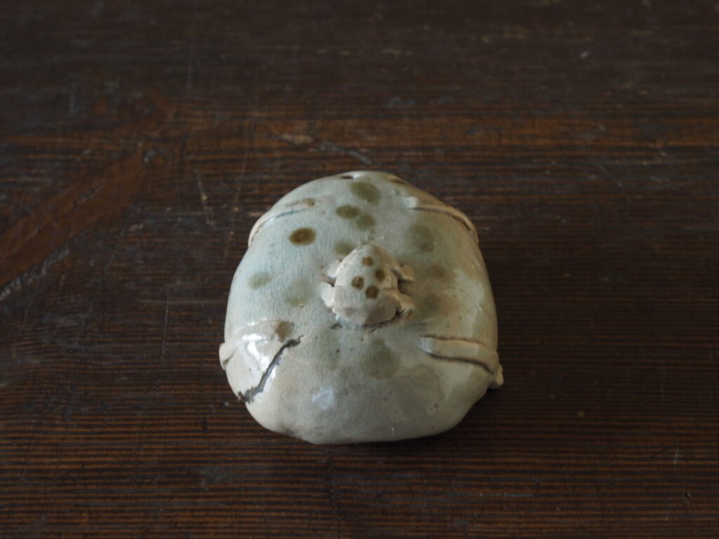 鉄砂文、棒で開けただけのつぶらな瞳、適当な造形の子供蛙と、観るこちら側も力が抜けてしまいます。