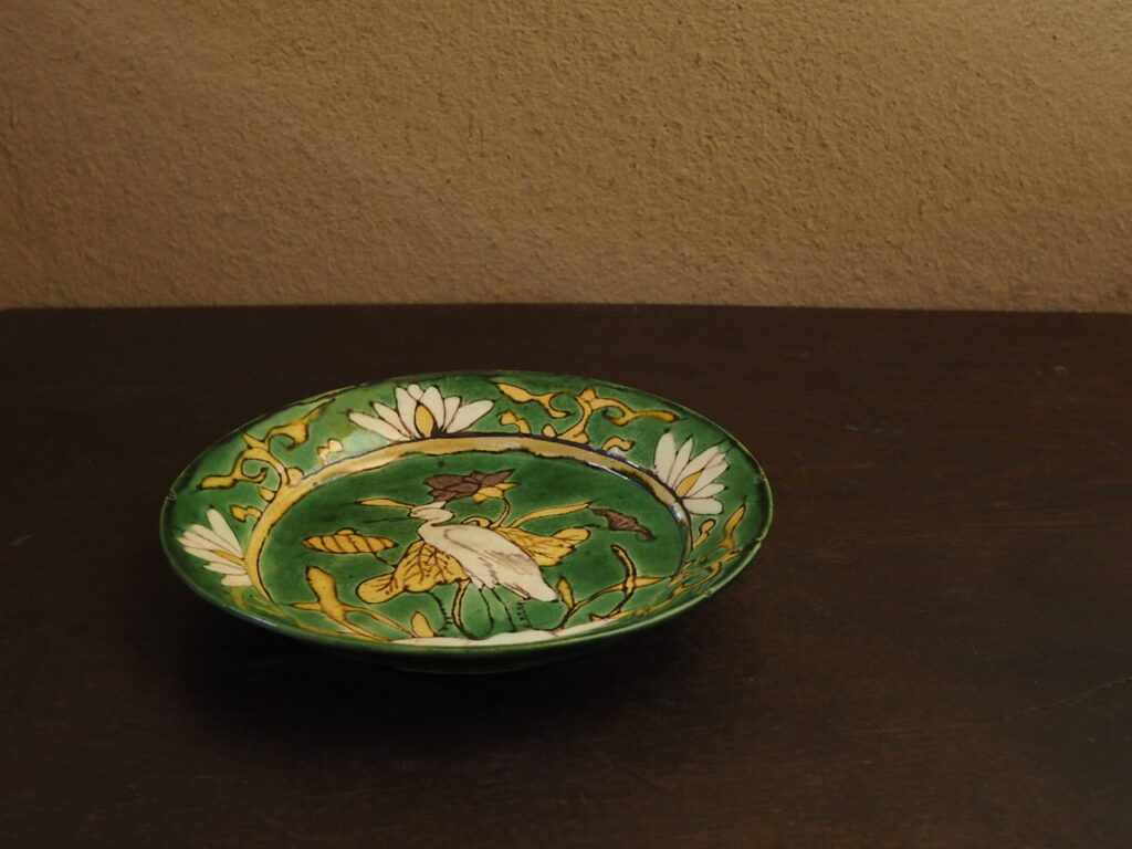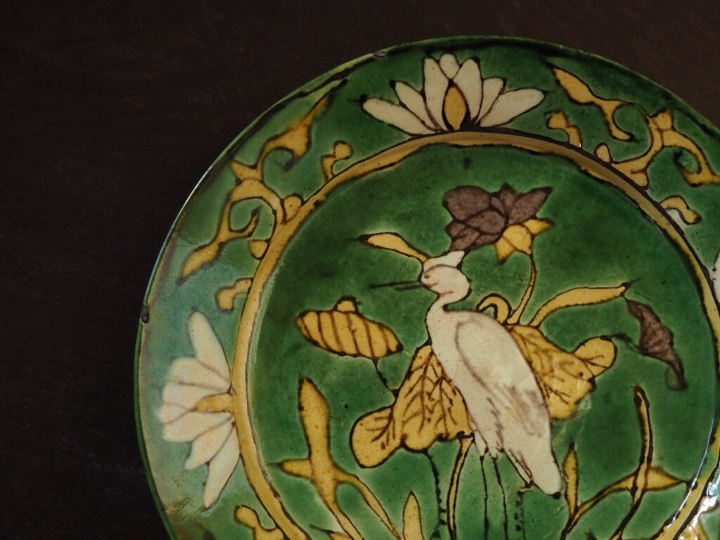 交趾焼とも呼ばれ茶人に賞玩された中国南方の皿で、陰刻や貼花の文様が多い中、筆による絵付は