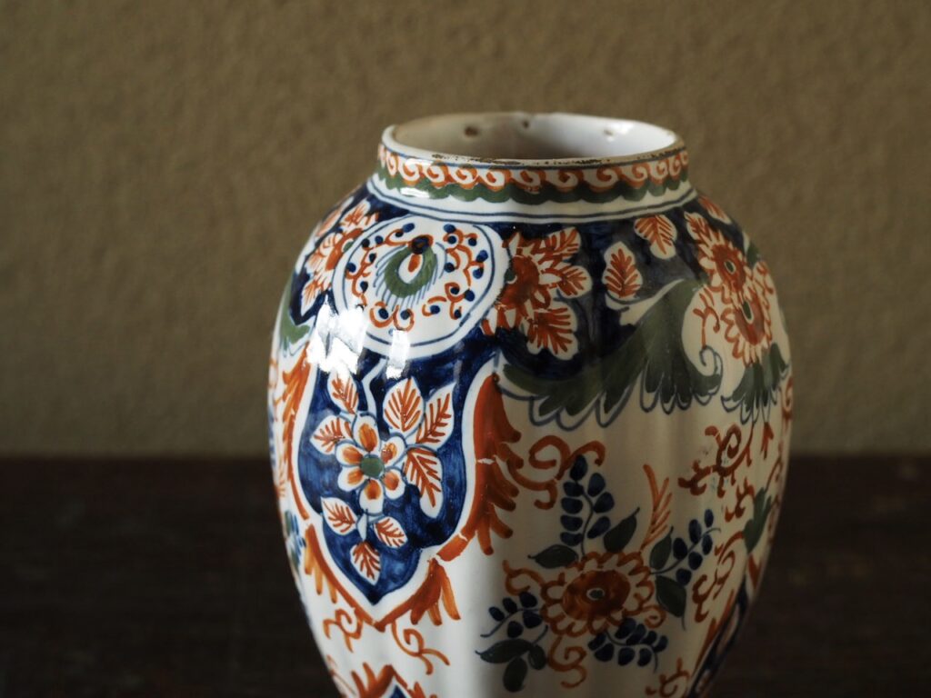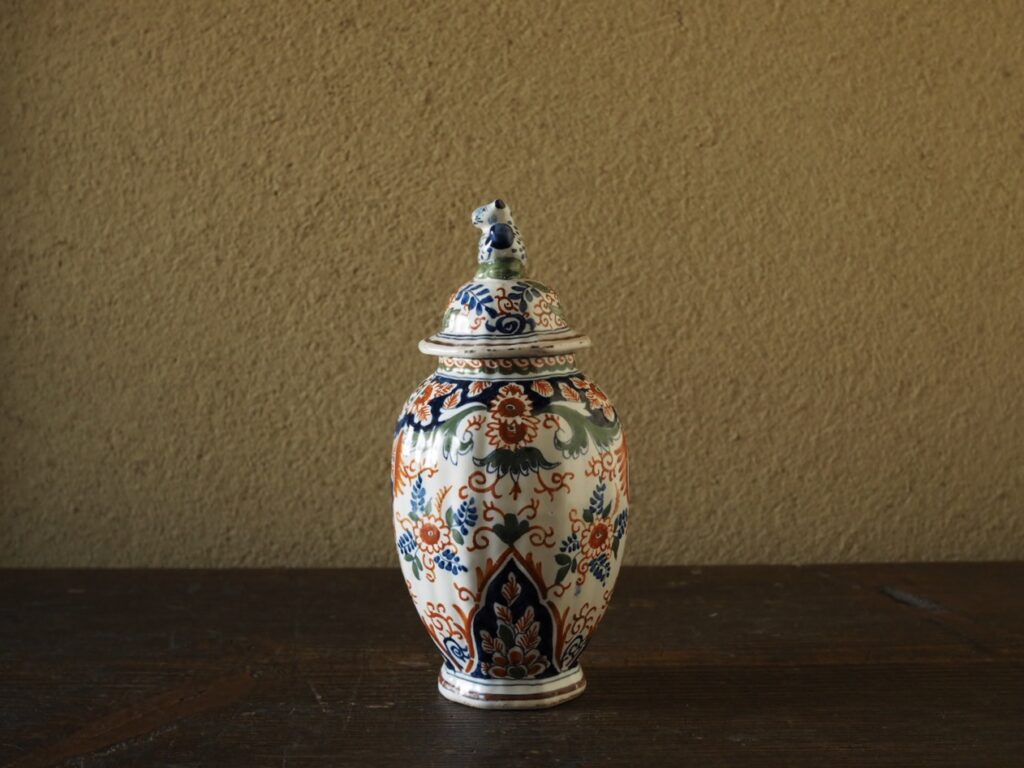 デルフトらしい柔らかな鉛白釉の肌に、花達が鮮やかな色合いで優しく素朴に