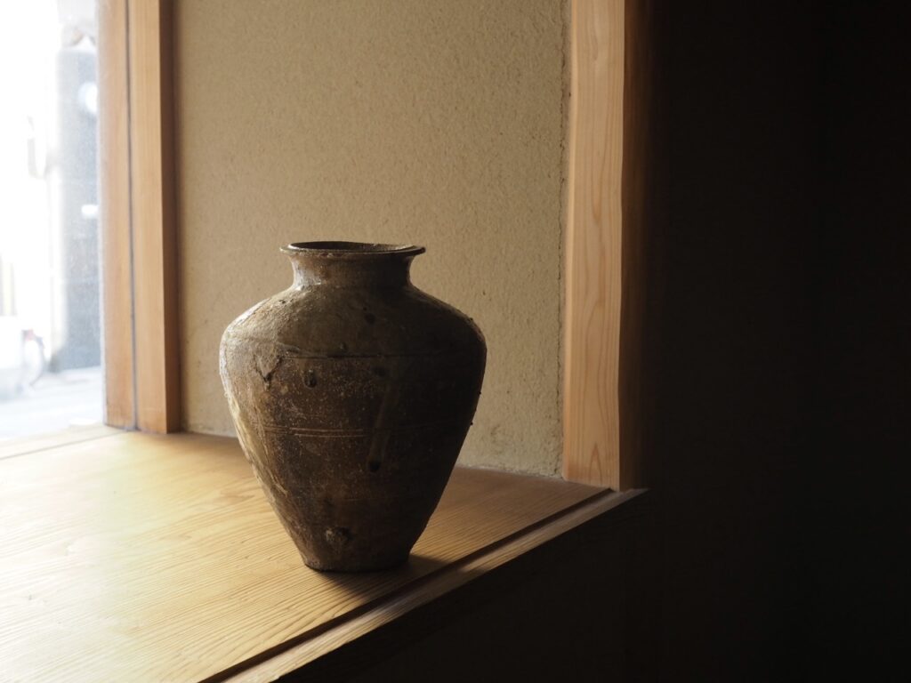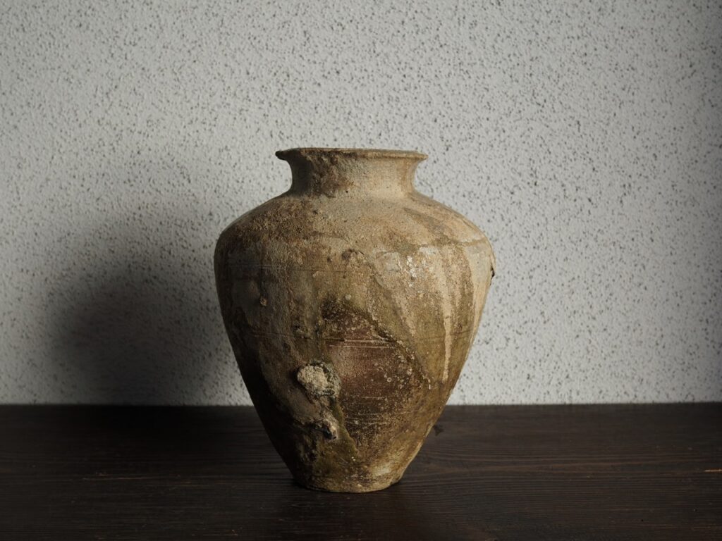 壺の姿です。たっぷりと掛かった千変万化の自然釉とよく焼けた土肌は大変野趣に溢れており、その儚さを