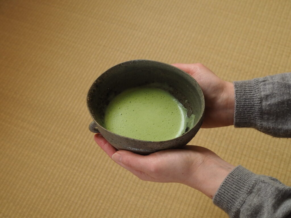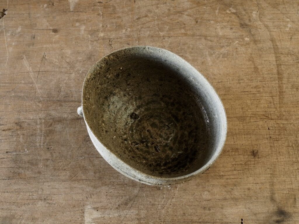 桃山の沓茶碗を想わすような姿形やサイズは、つい茶を点てたい衝動にかられます。もはや形骸化