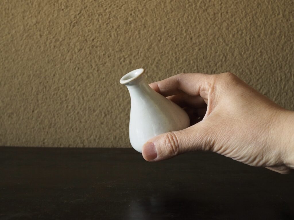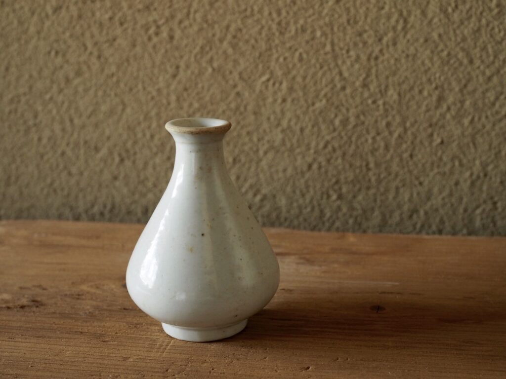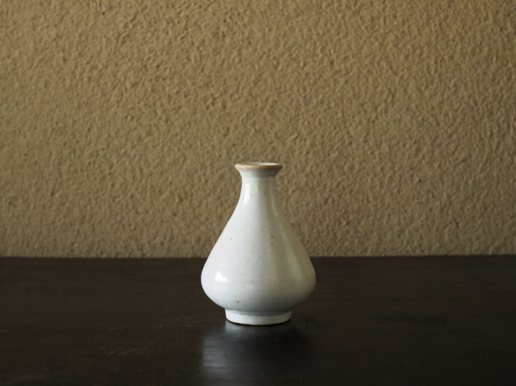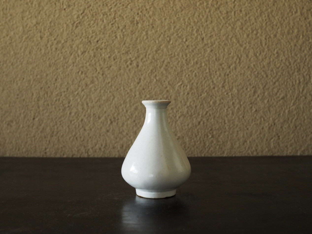 小品ながら端正な玉壺春形と澄み切ったような鮮やかな白が印象的です。潤いのある光を