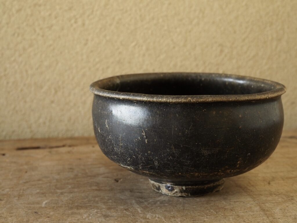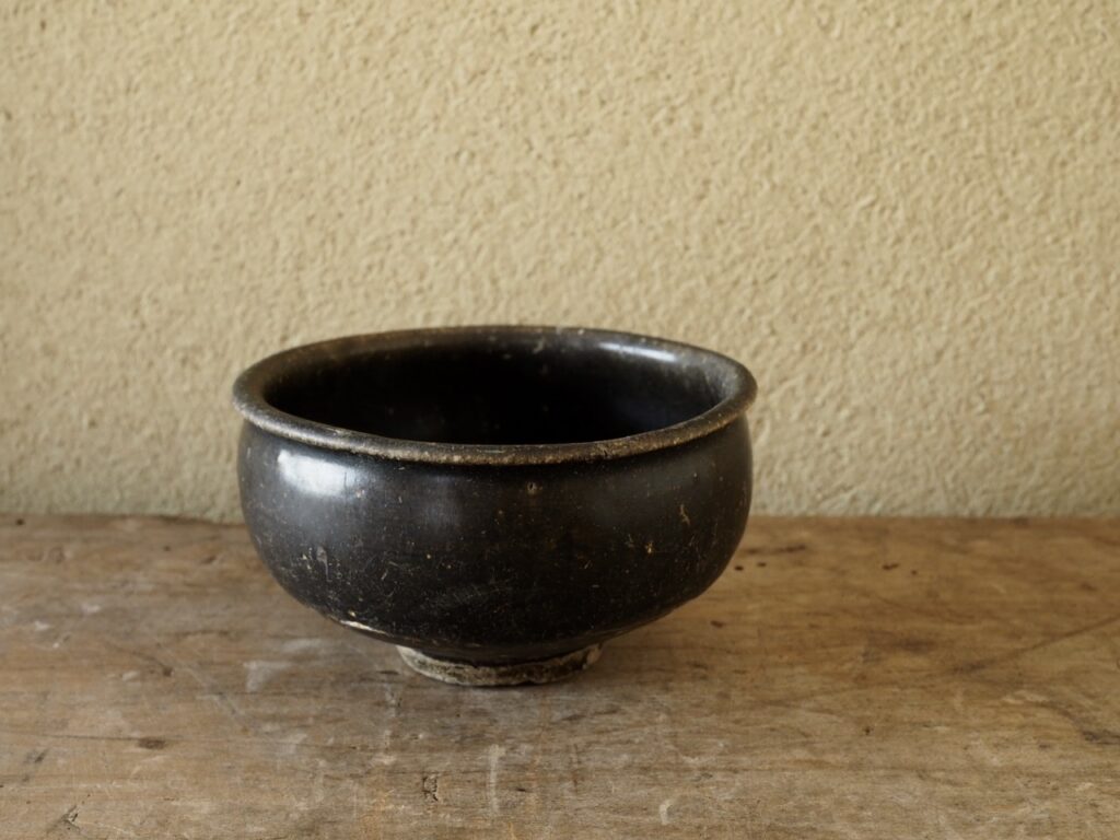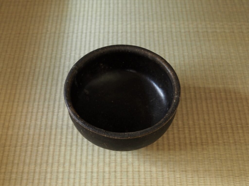 かかった黒釉は濡らすと漆黒の輝きを見せ、長次郎、瀬戸黒からつながる真黒の持つカッコよさを
