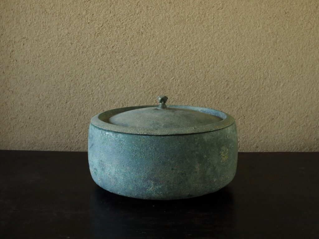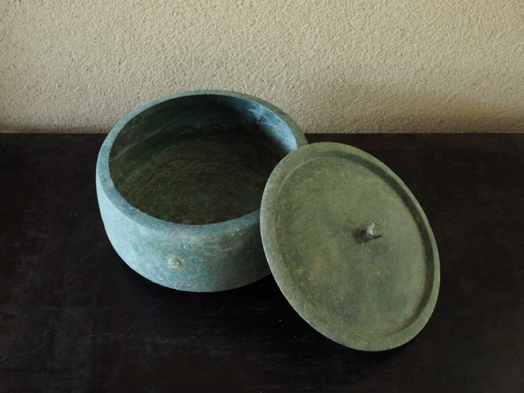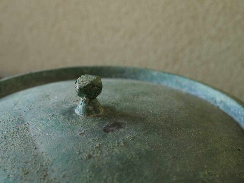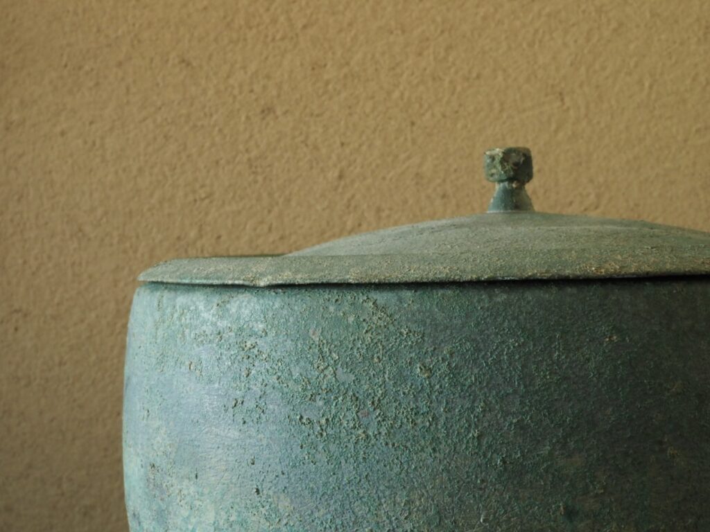 薄さからくる繊細な稜線が、その時代の厳しさと儚さを現しているようです。全体に纏った緑青は