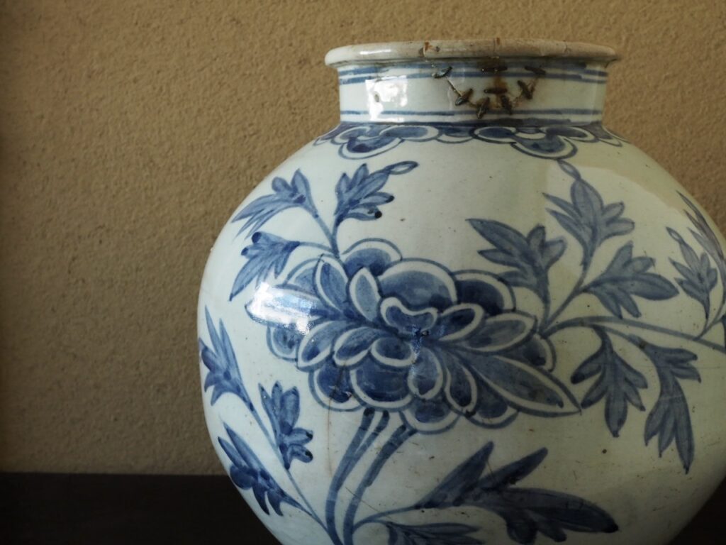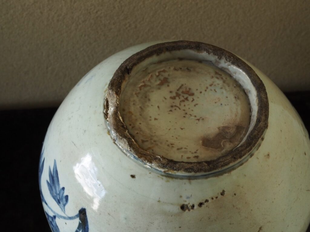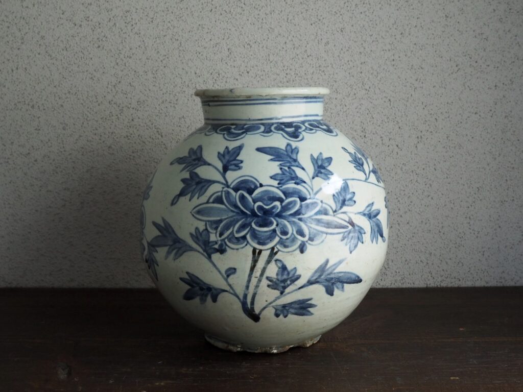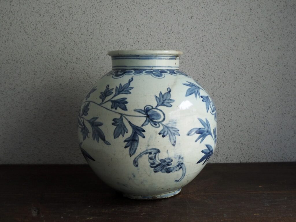 日本の風土には無い、韓くに独特の大らかさと格調の高さを感じさせる染付壺であります。