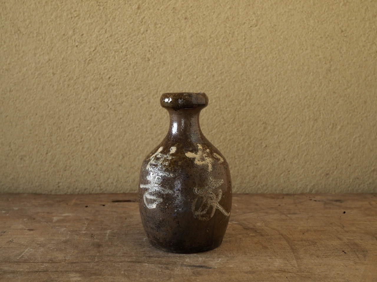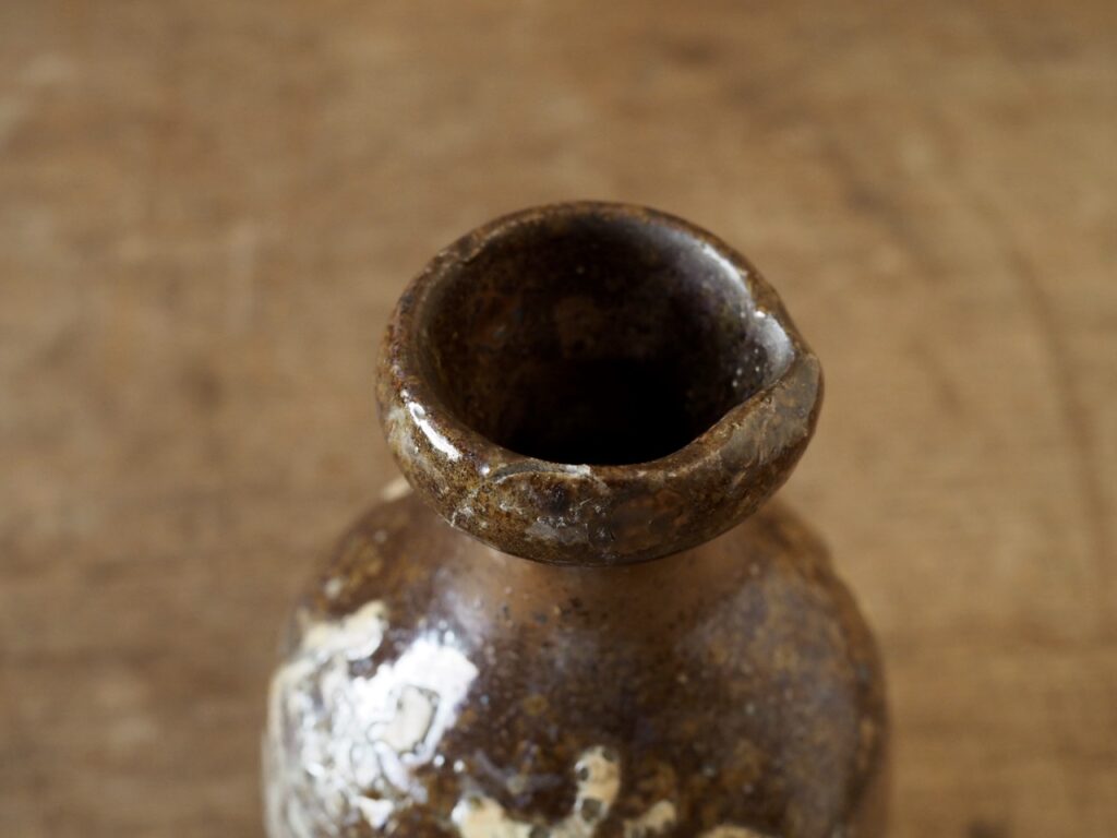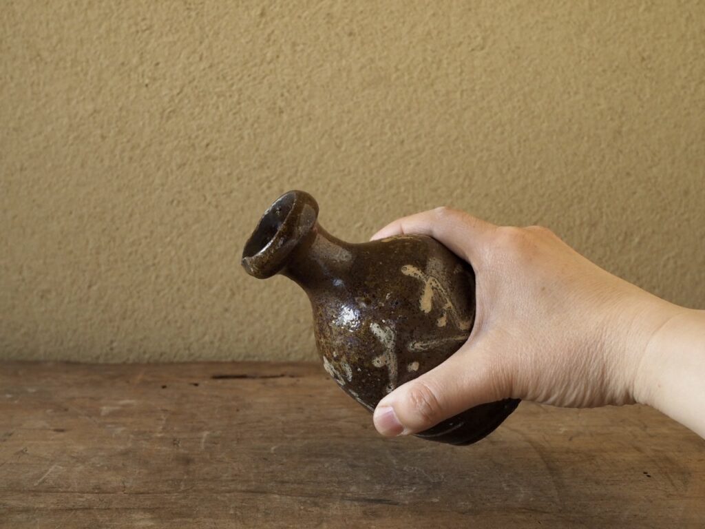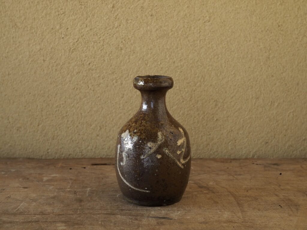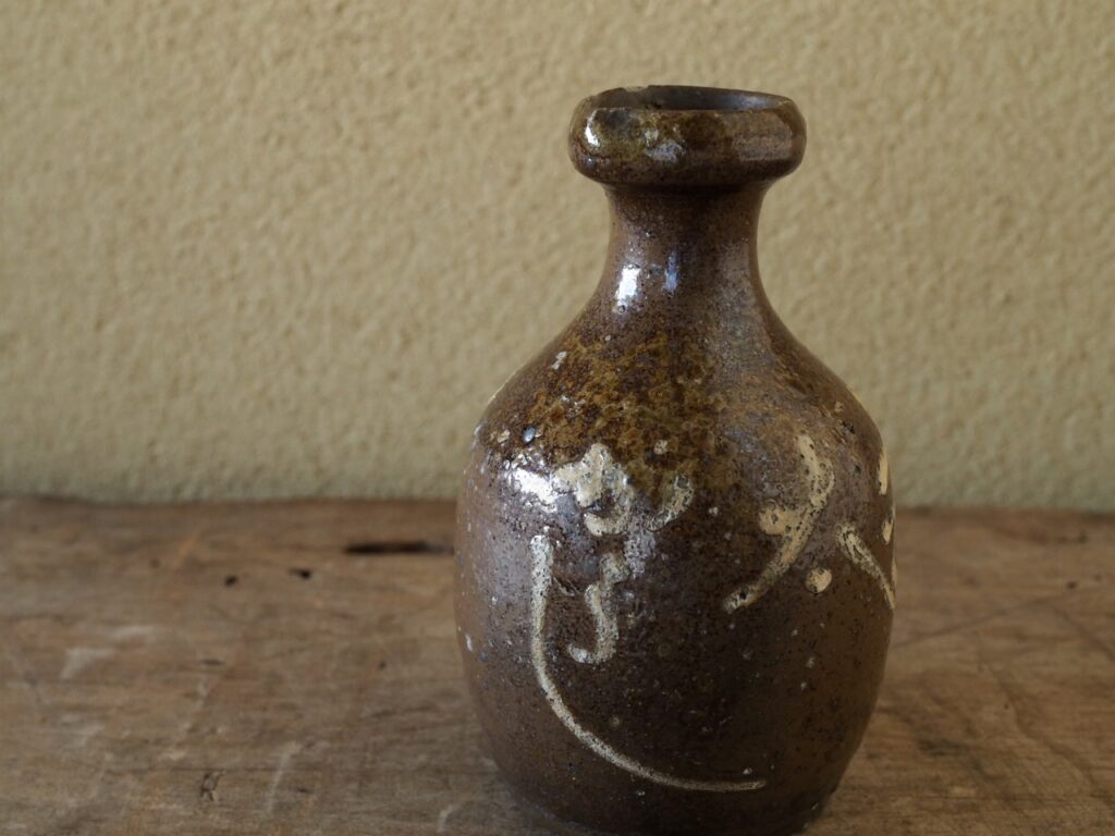 頸が細く締まったフォルムがカッコ良い丸太こうしの二合徳利。よく火が当たったのか、