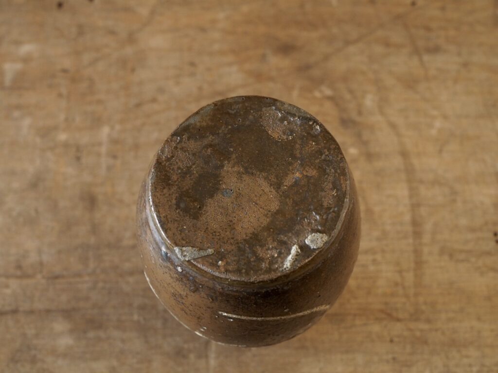 明るく変化に富んだ褐色の釉肌に、肩に降りかかった灰が渋味のある表情を見せます。