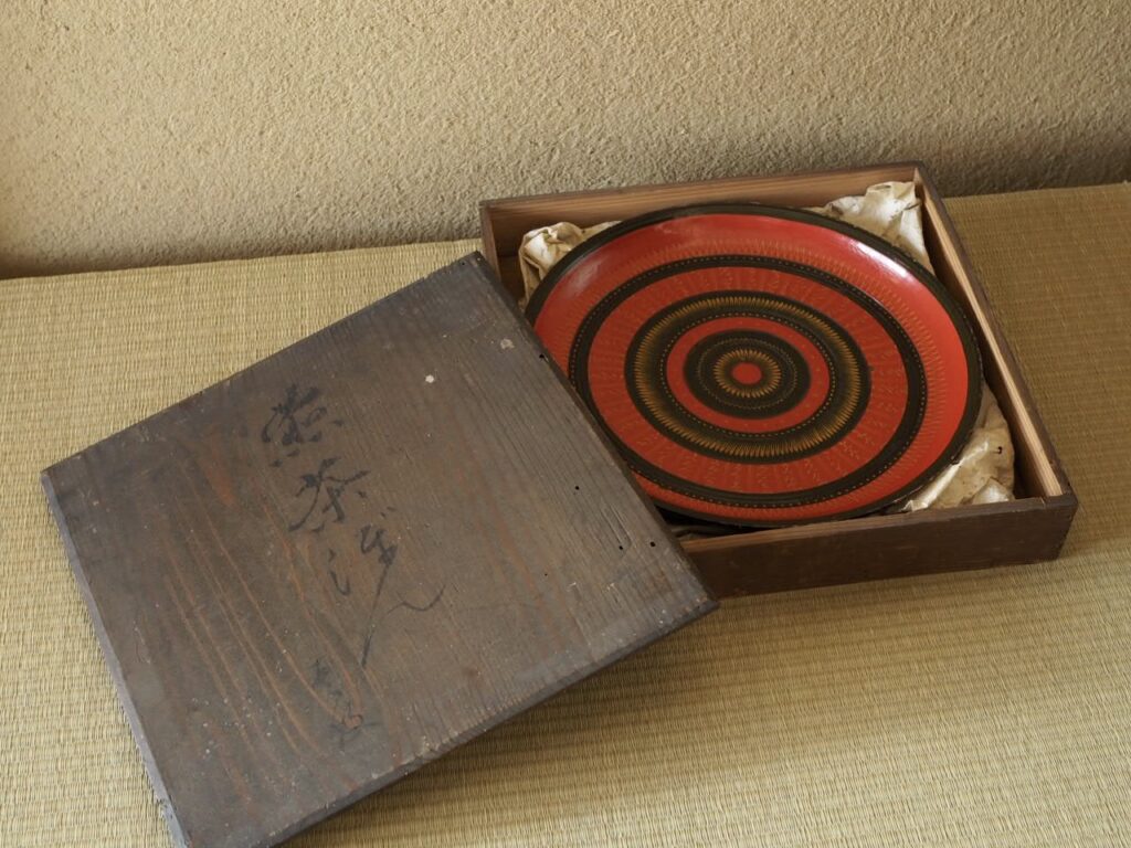 直径23.7㎝ 高さ2.5㎝ 18世紀頃 東南アジア 口縁などに漆の剥落有 時代箱付