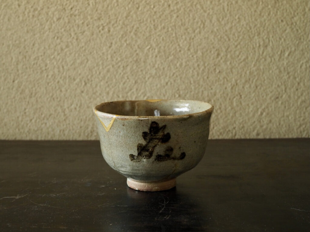 発掘伝世の茶碗で腰の張った深めの姿と、若松文様のリズミカルな配置との調和がとてもかわいく、