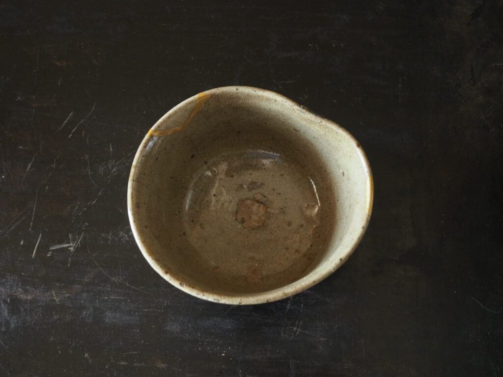 見込みに見える丸いところは釉がはじけて無釉になっています。穴や修理跡ではありません。