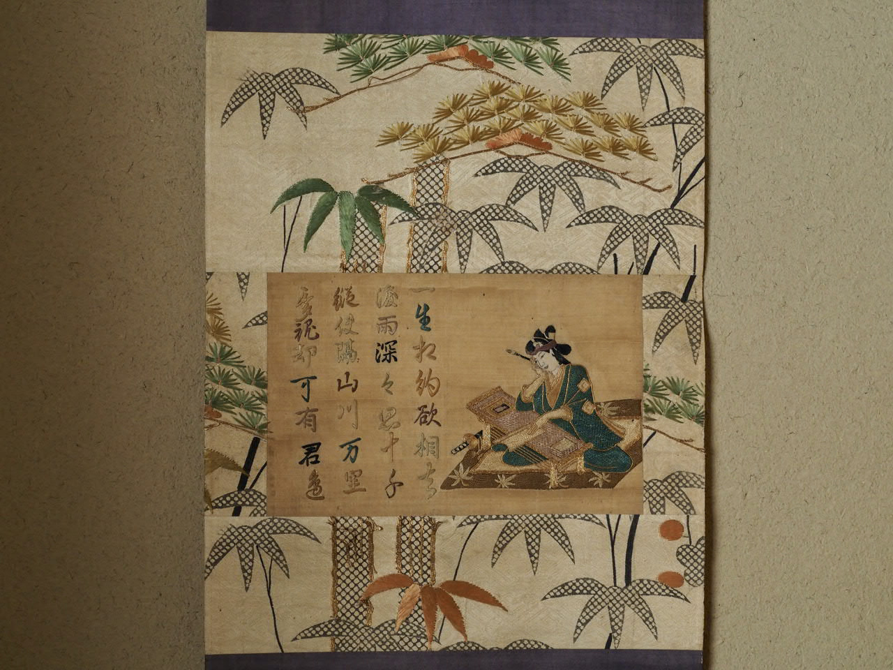 大変珍しい刺繍による若衆図で、着物の一部であったのでしょうか。鮮やかな糸による