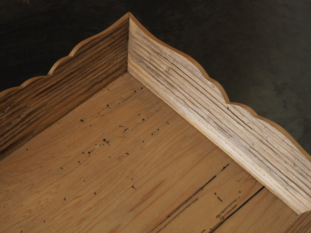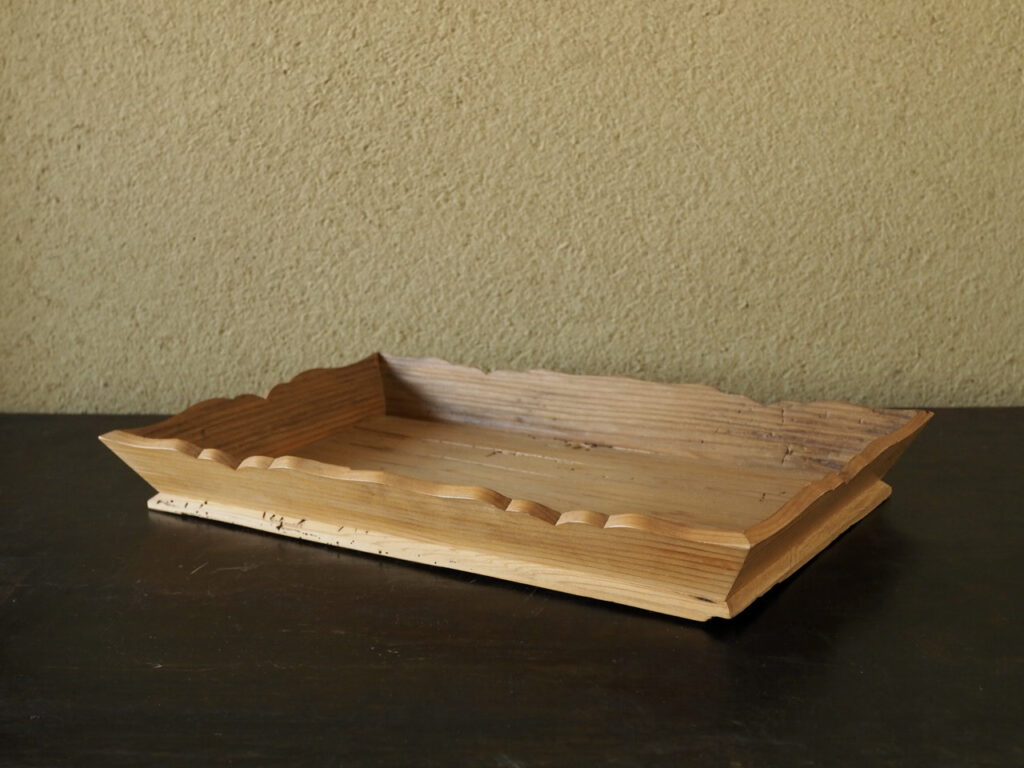 その古材を以って、京の指物師一ノ瀬小兵衛が造った盆で、白木の清い佇まいは山深い栂尾の