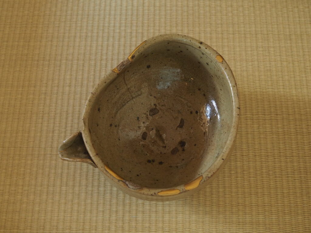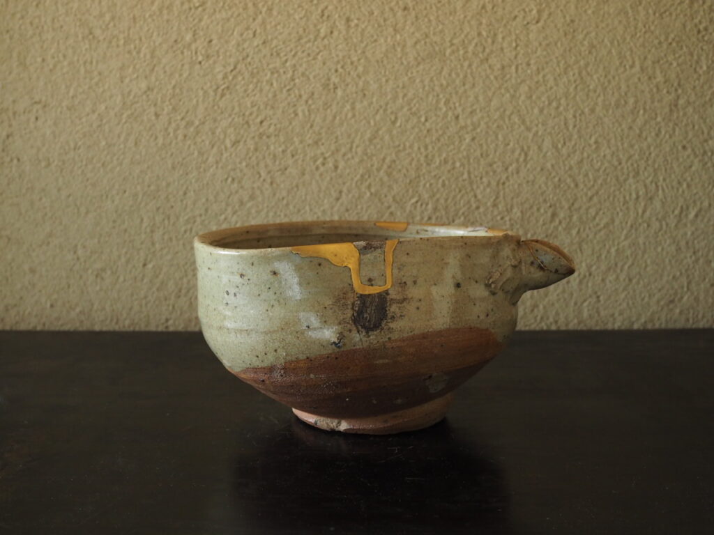 口径14.2〜16.8㎝ 高さ10.0㎝ 桃山〜江戸初 呼継ぎニュウ金継ぎ 容量550ml 桐箱付