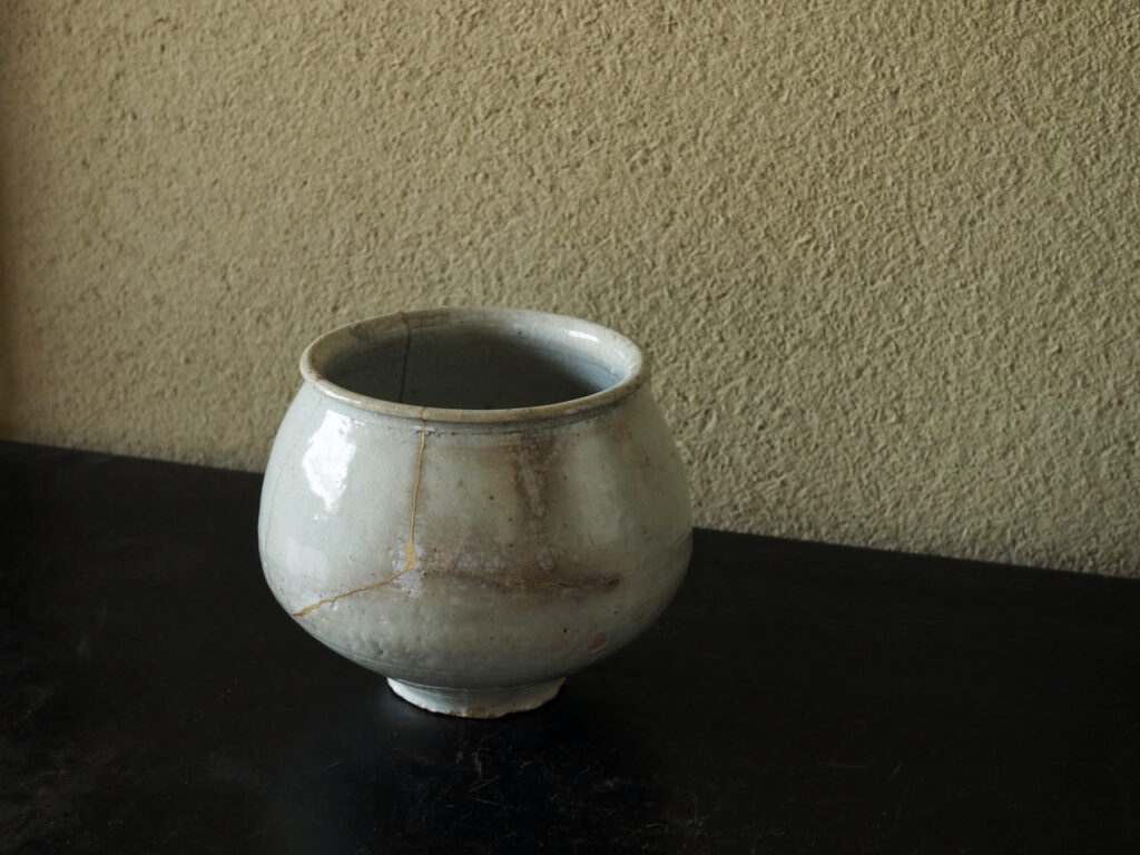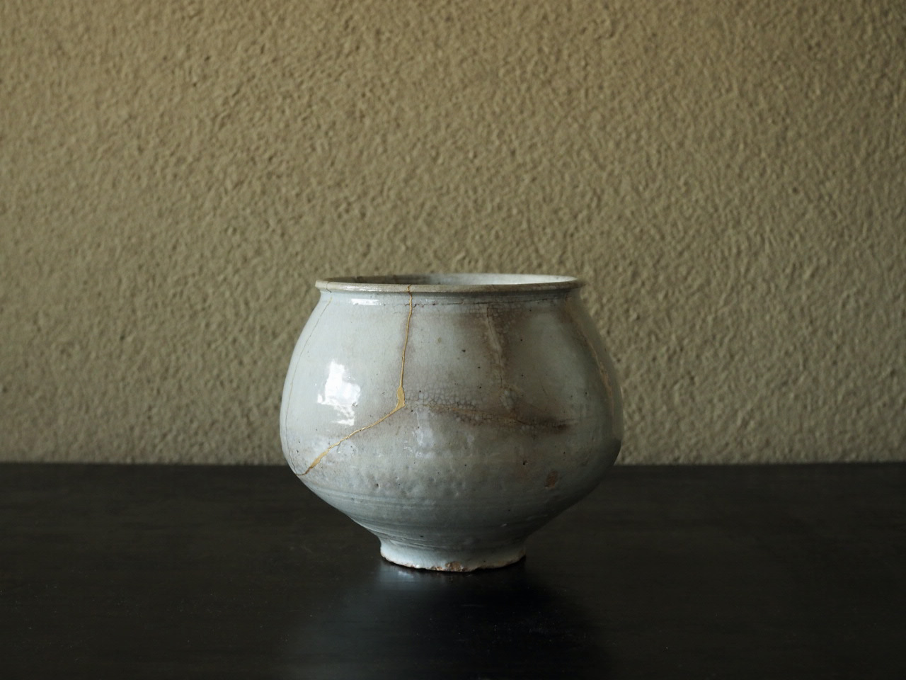 大きな修理がありますが、不思議と疵があることがこの壺の魅力と感じてしまうのは、