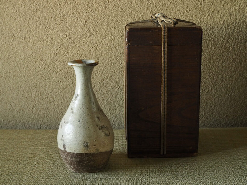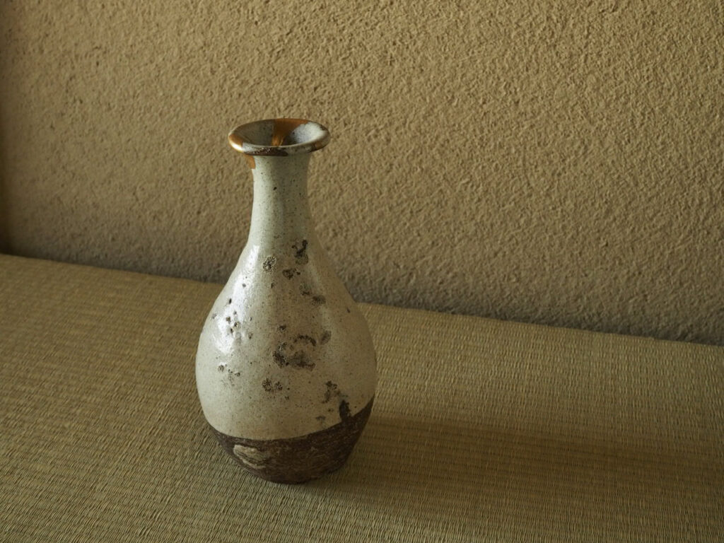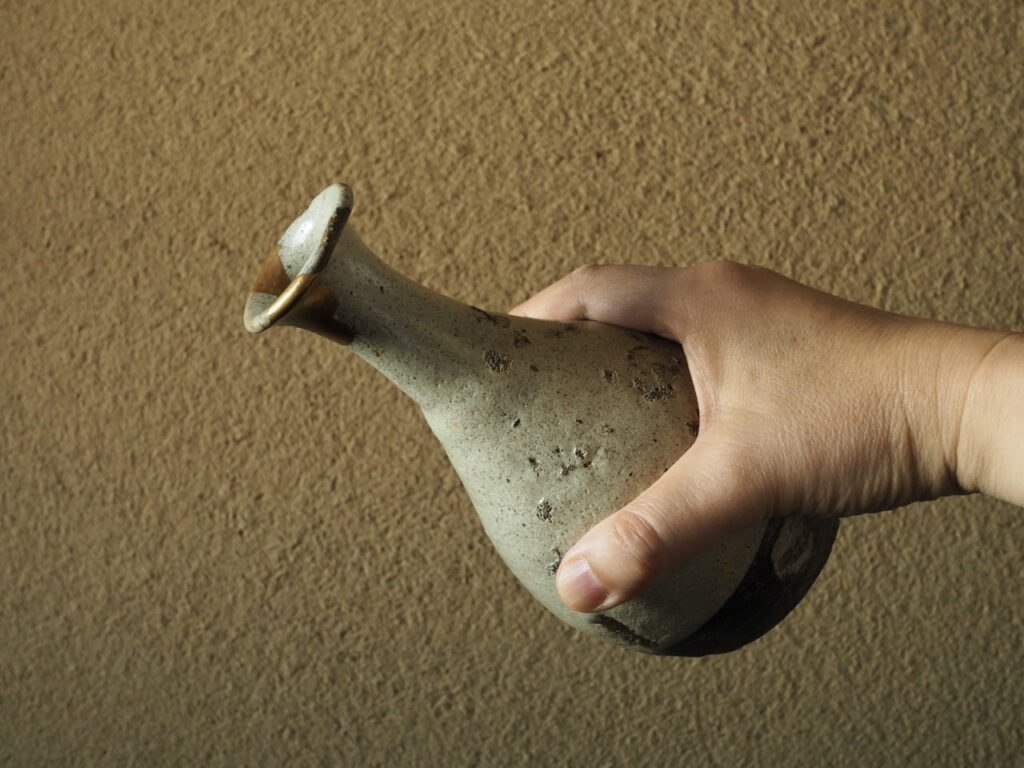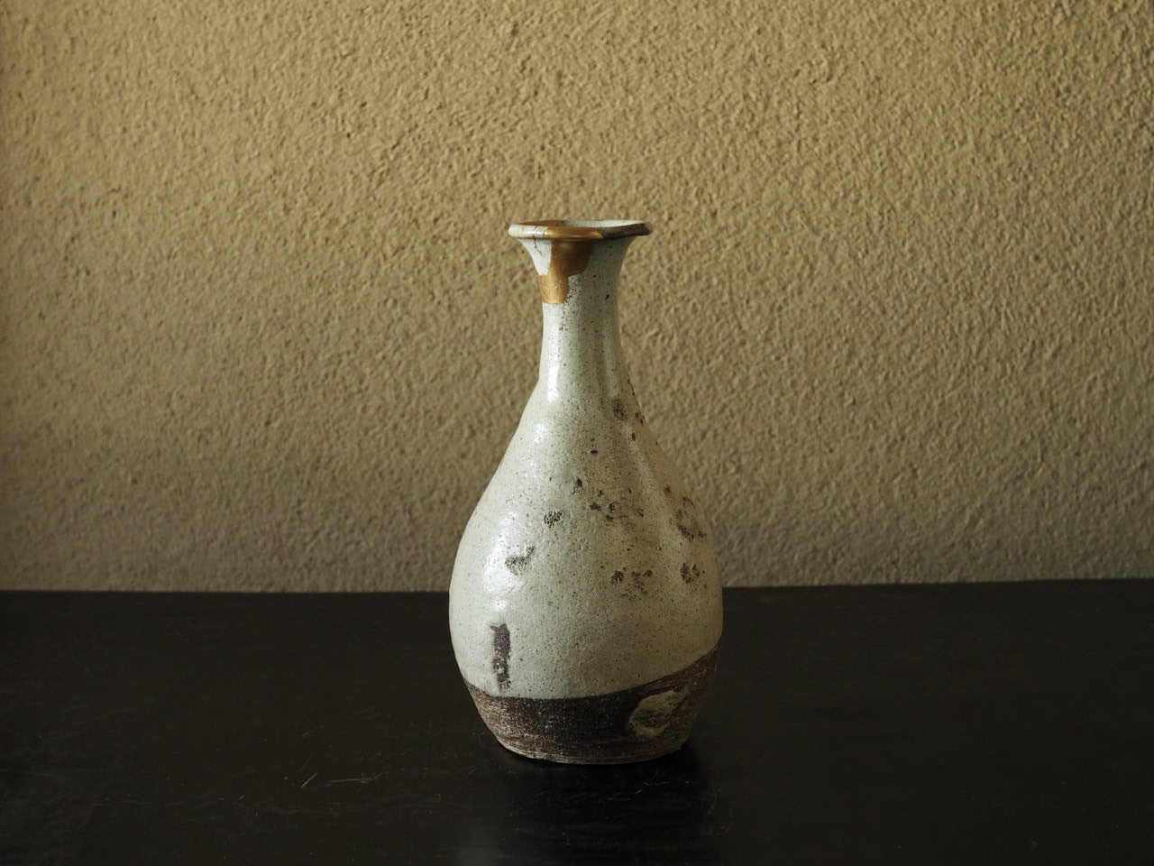 手取りは軽やかです。掘の手ですが藁灰釉はいたって健全、らっきょう形の立ち姿は端正で、