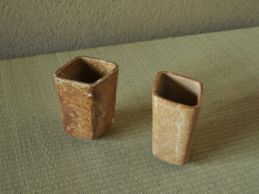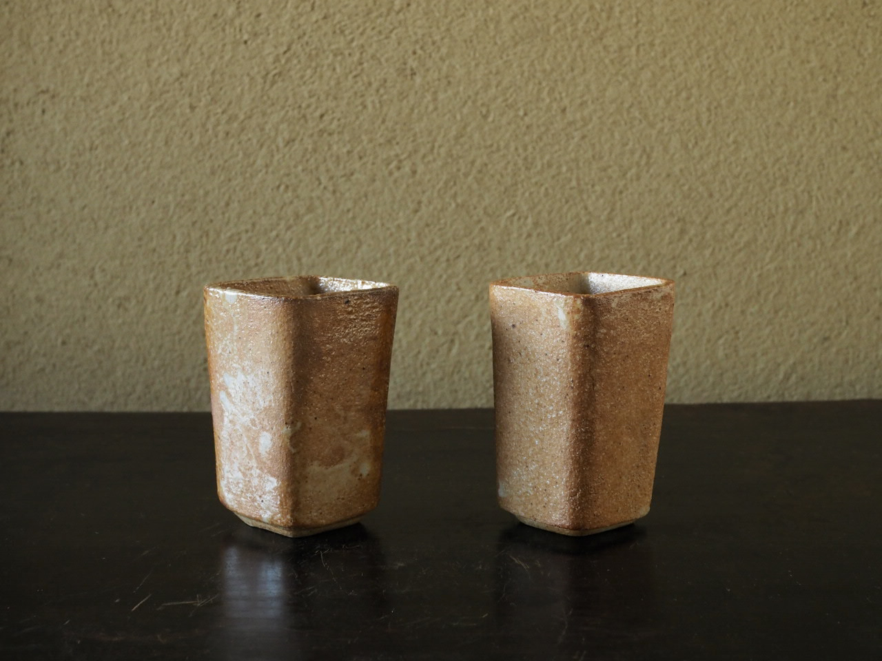 大変珍しい信楽の筒向付で、残念ながら五客の内二客しか残っていません。垢抜けた色調と