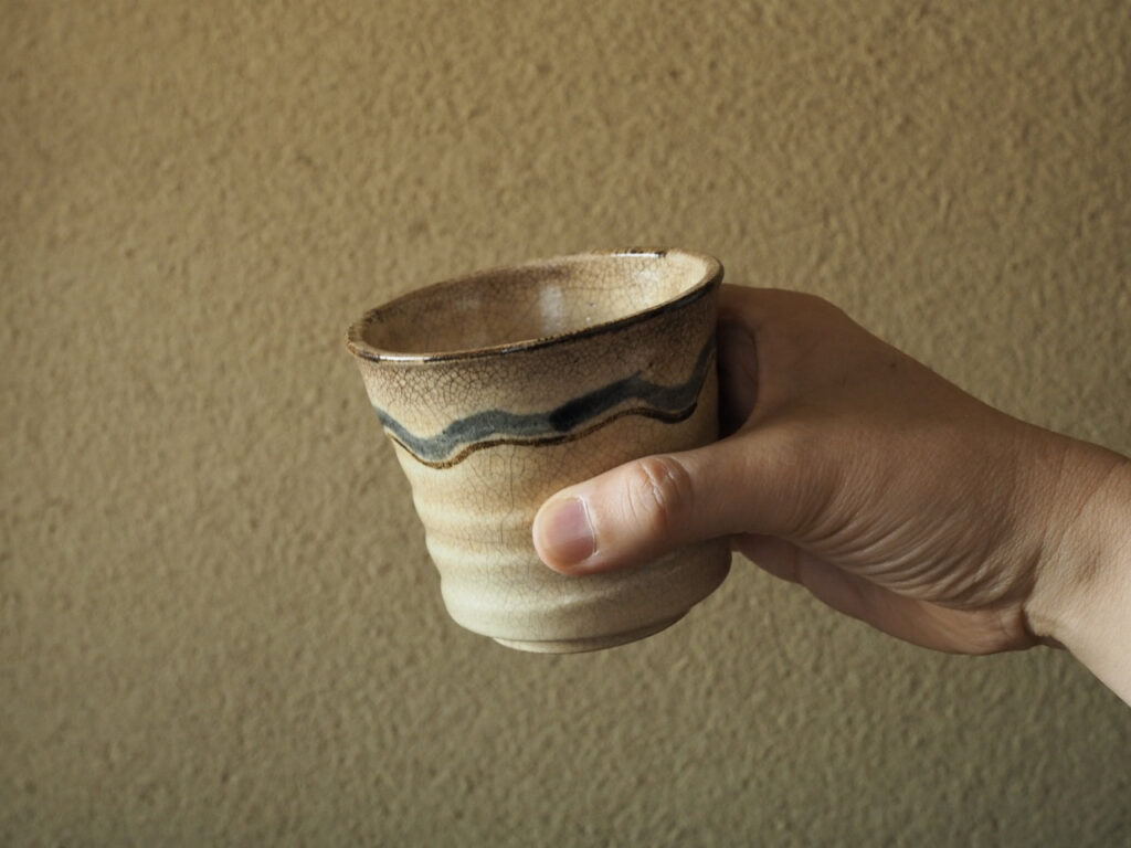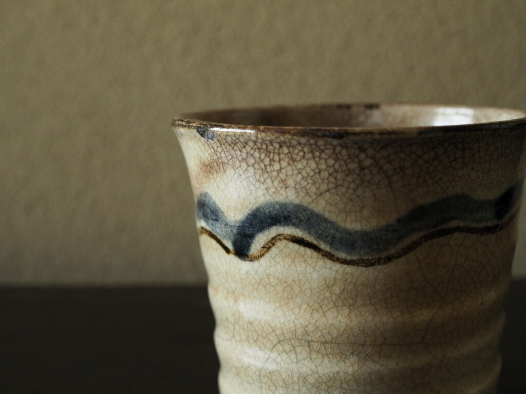 染付と鉄絵による不規則な波線のみが描かれた大変洒落た筒向付です。力の抜けた