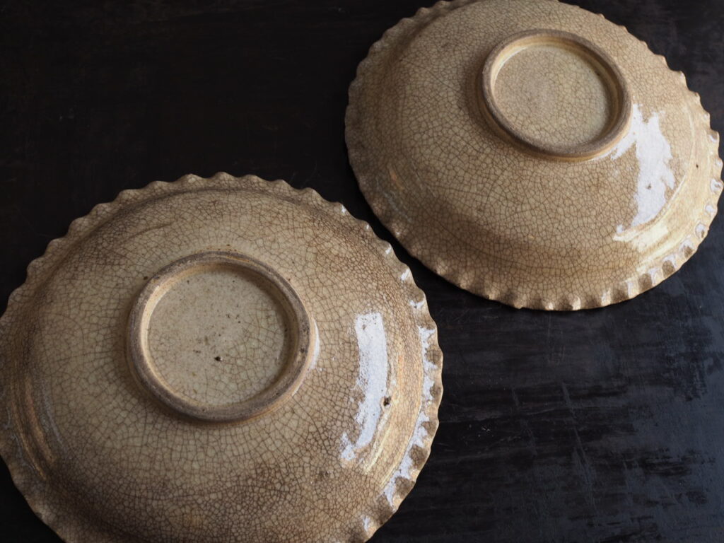 ひだ皿と呼ばれるフリルの付いた皿は、当時人気商品であったようで瀬戸において多く