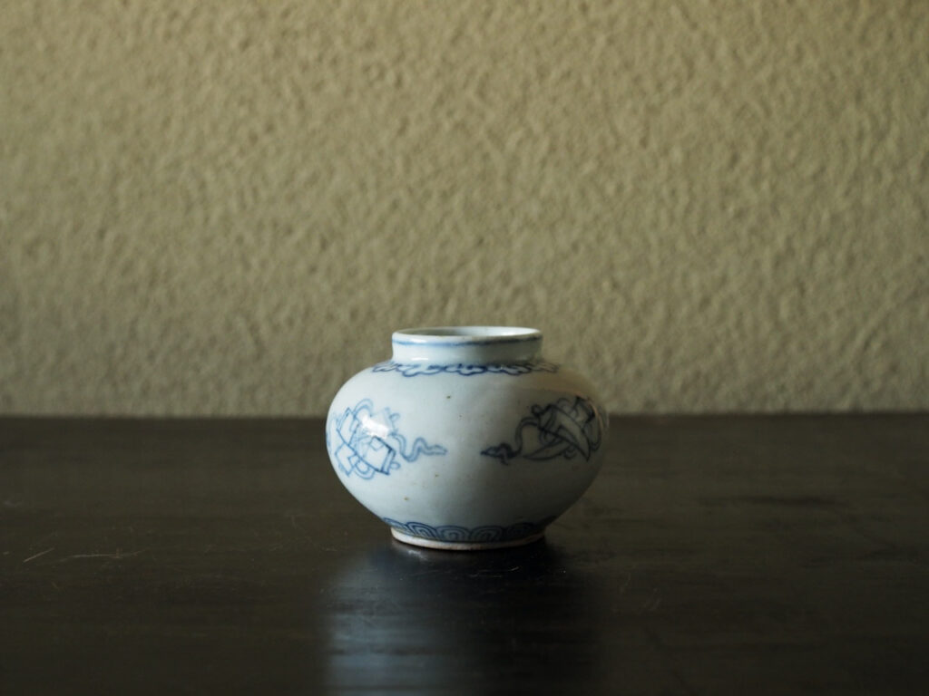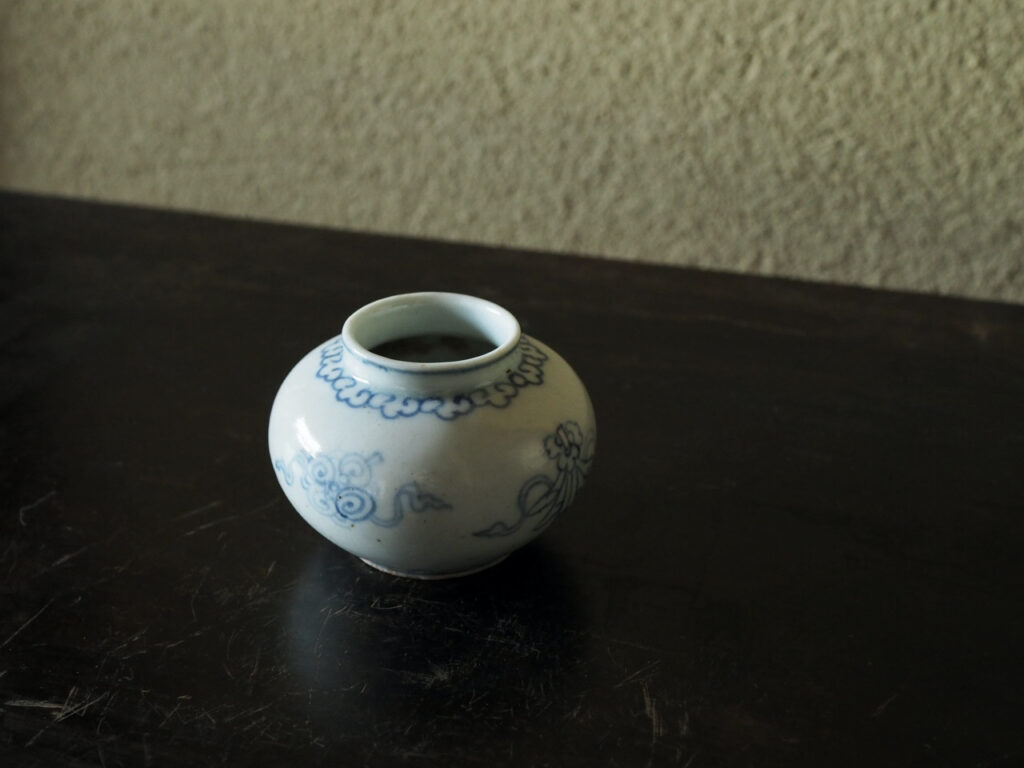 磁肌に、上質の呉須を持って細い筆で描かれた吉祥文とその余白が生み出す清廉な