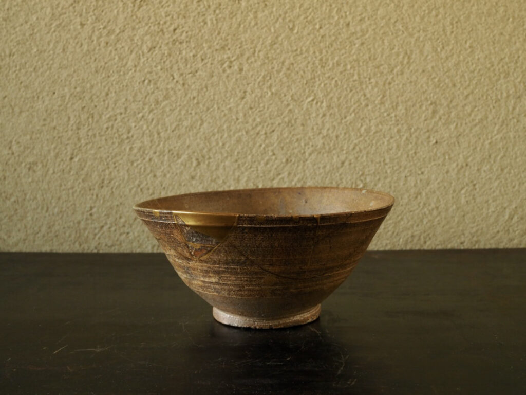口径14.0〜14.4㎝ 高さ6.2〜6.7㎝ 李朝中期 金継ぎニュウ 仕覆時代箱付