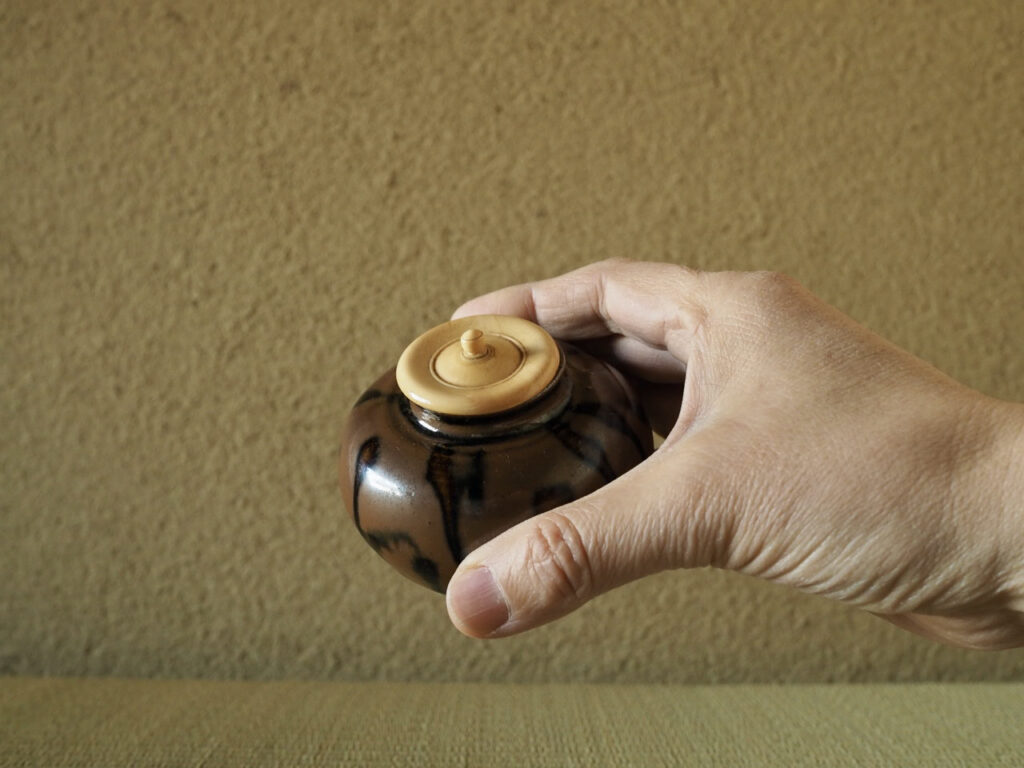 高さ5.8㎝ 胴径7.6㎝ 口径4.0㎝ 江戸初期 口にニュウ 仕覆時代箱