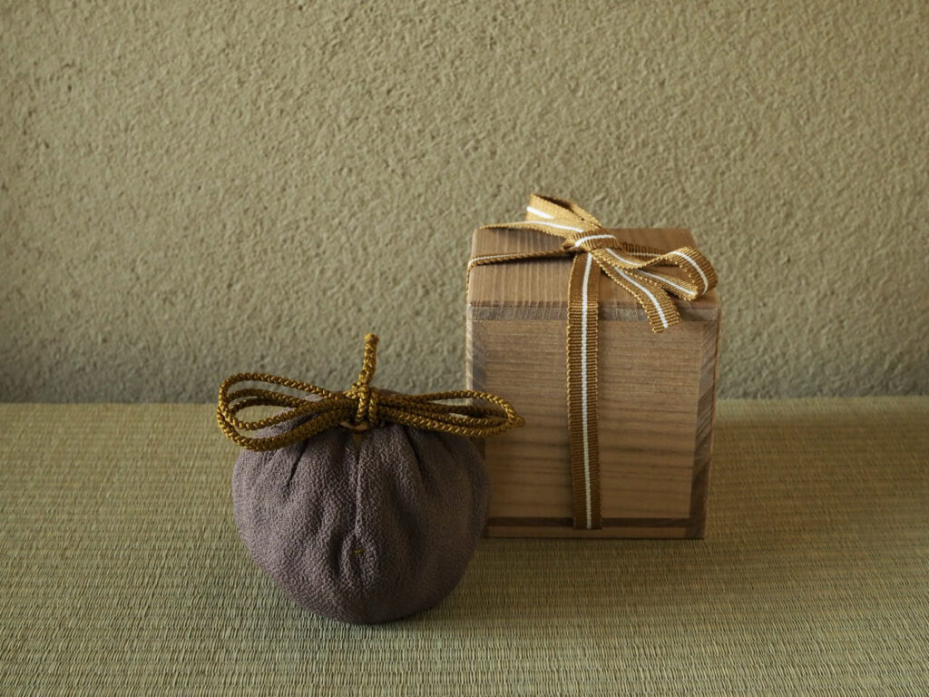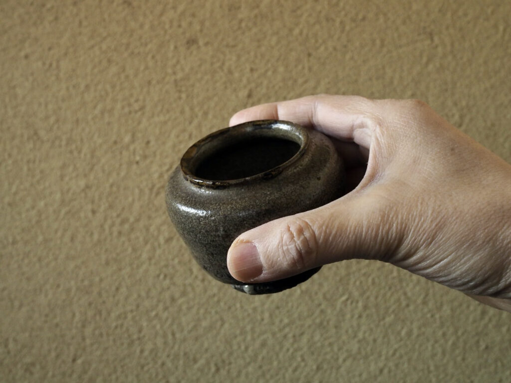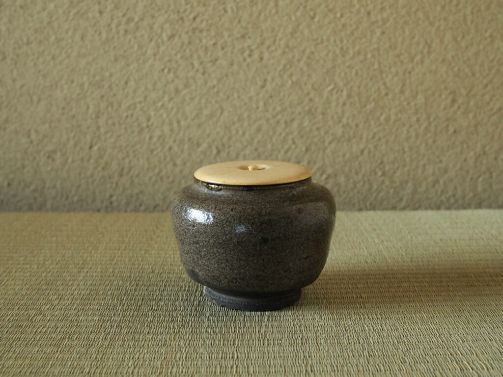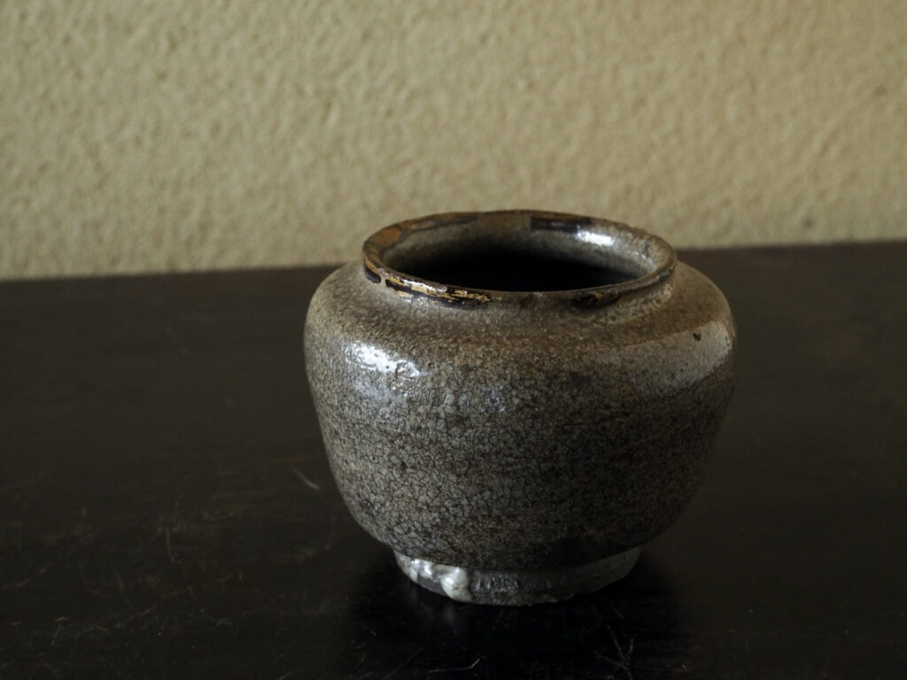 高さ6.0㎝ 胴径6.0㎝ 口径5.6㎝ 桃山時代 口金継ぎ 茶入仕立 仕覆桐箱付
