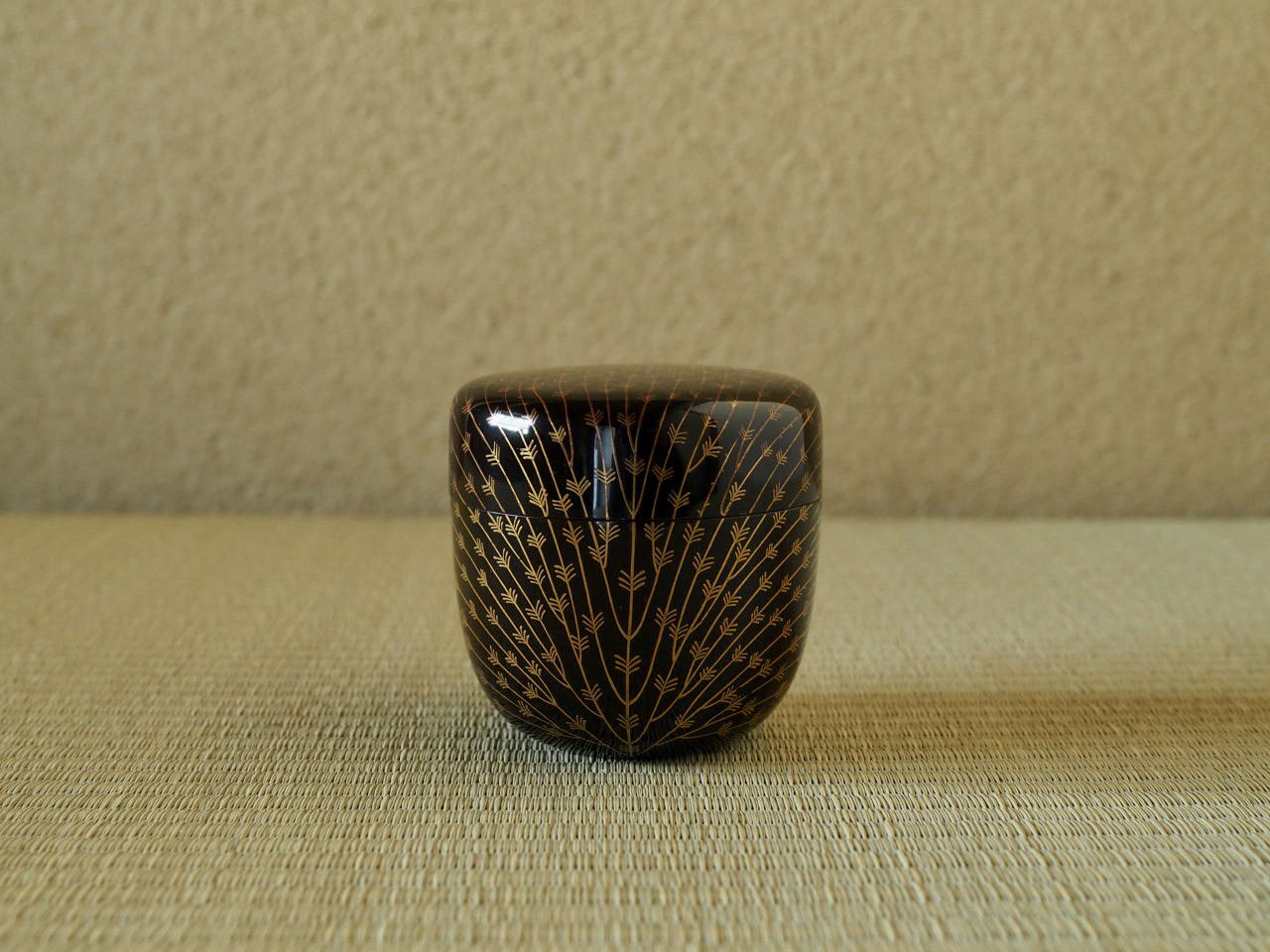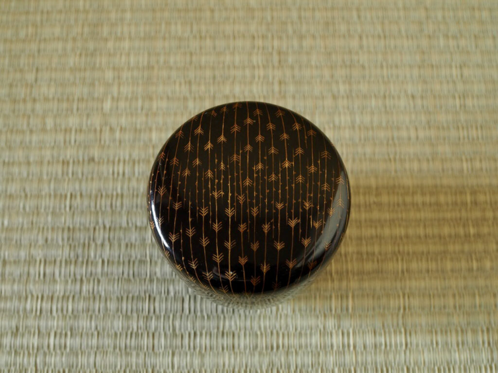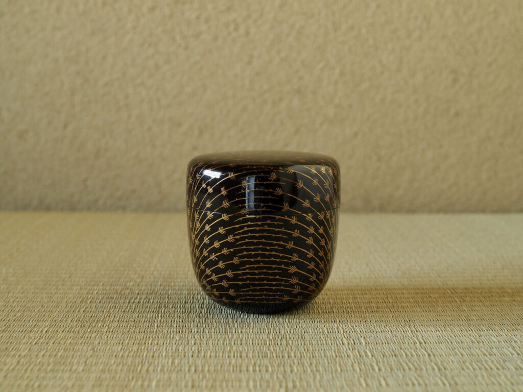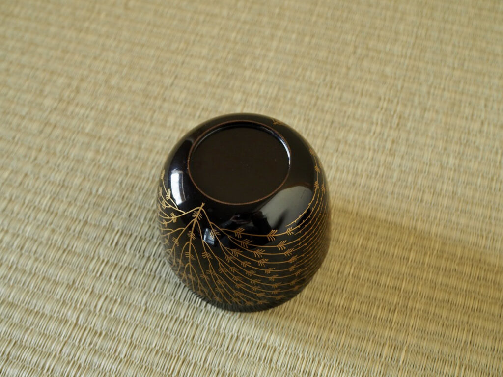 垂れ下がる柳の姿を金蒔絵で一面にデフォルメして描いており、その可愛らしさに加え、