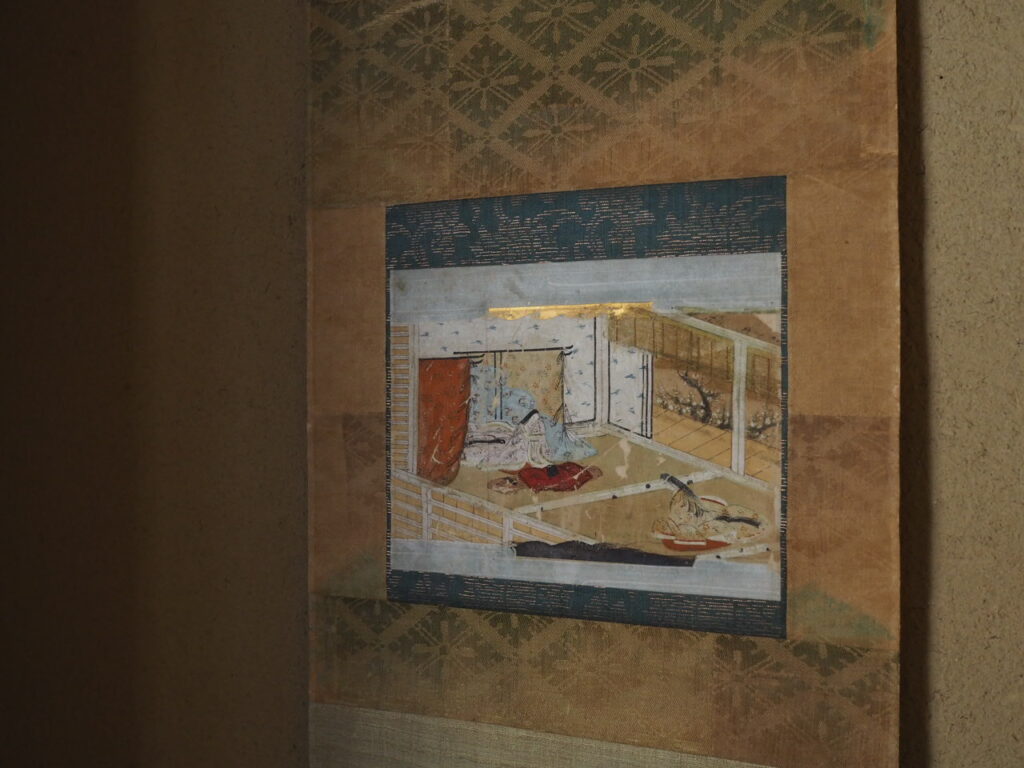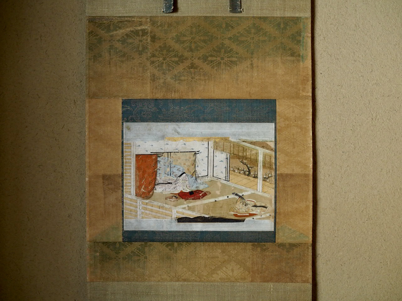 涙する場面のようです。少し素朴さを残しつつも細かく丁寧に描かれた宮中の様子は雅やかで、