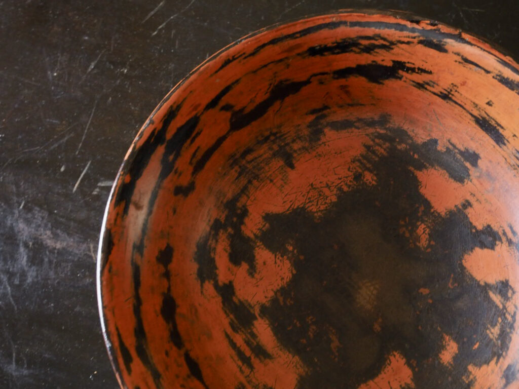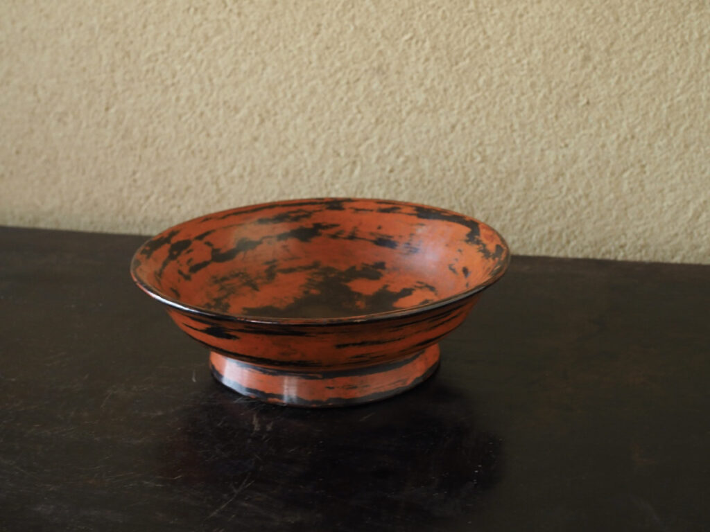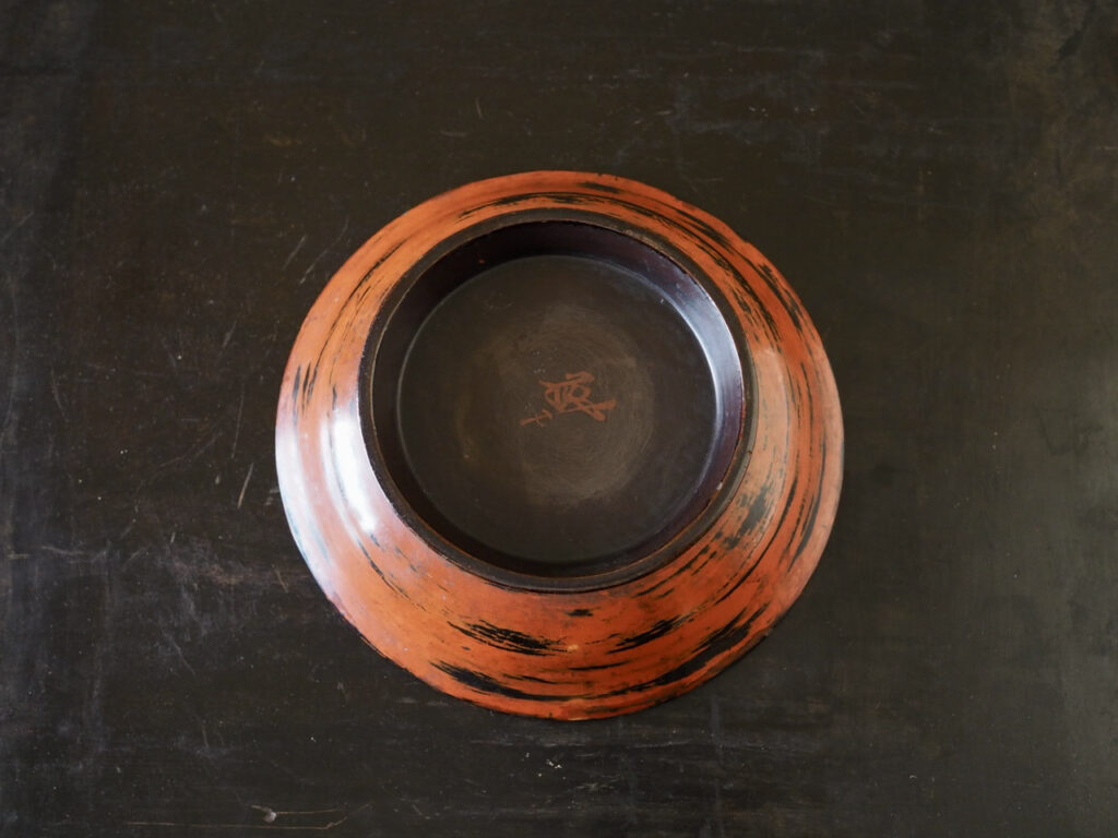 多い根来です。高台内に大徳寺春屋和尚の在判とありますが詳細は不明です。