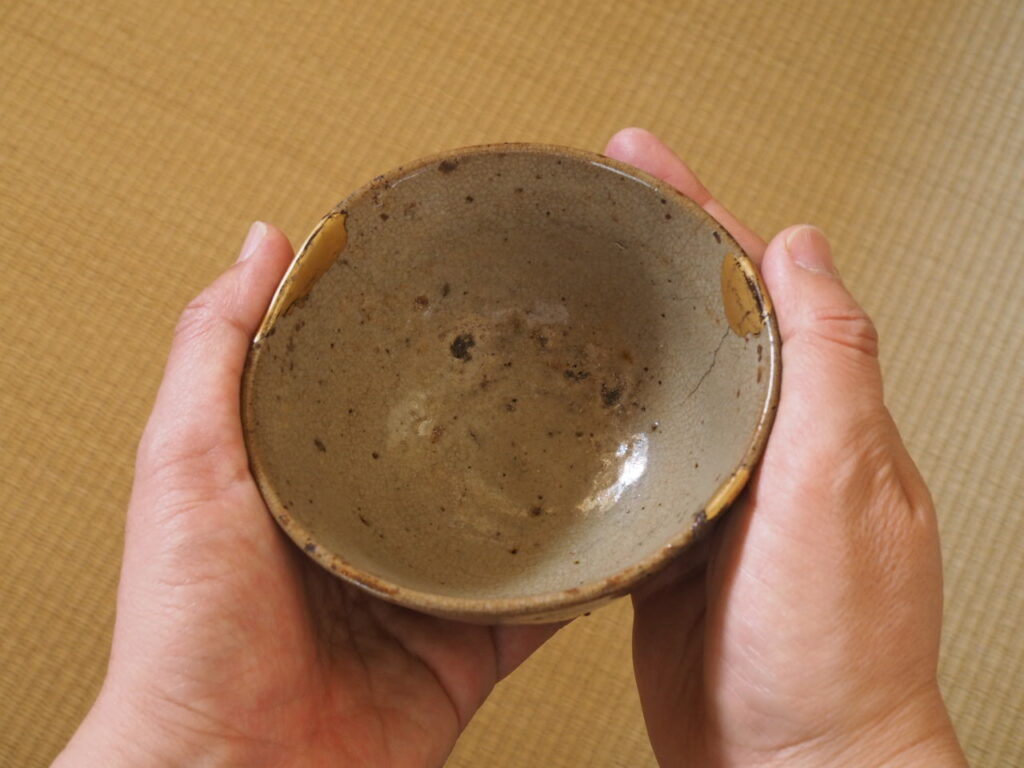 口径11.3〜11.7㎝ 高さ6.9㎝ 桃山時代 金なおし 見込みにくっつき痕 桐箱付