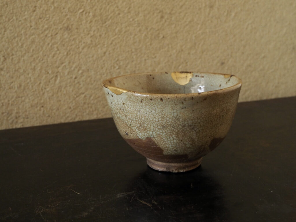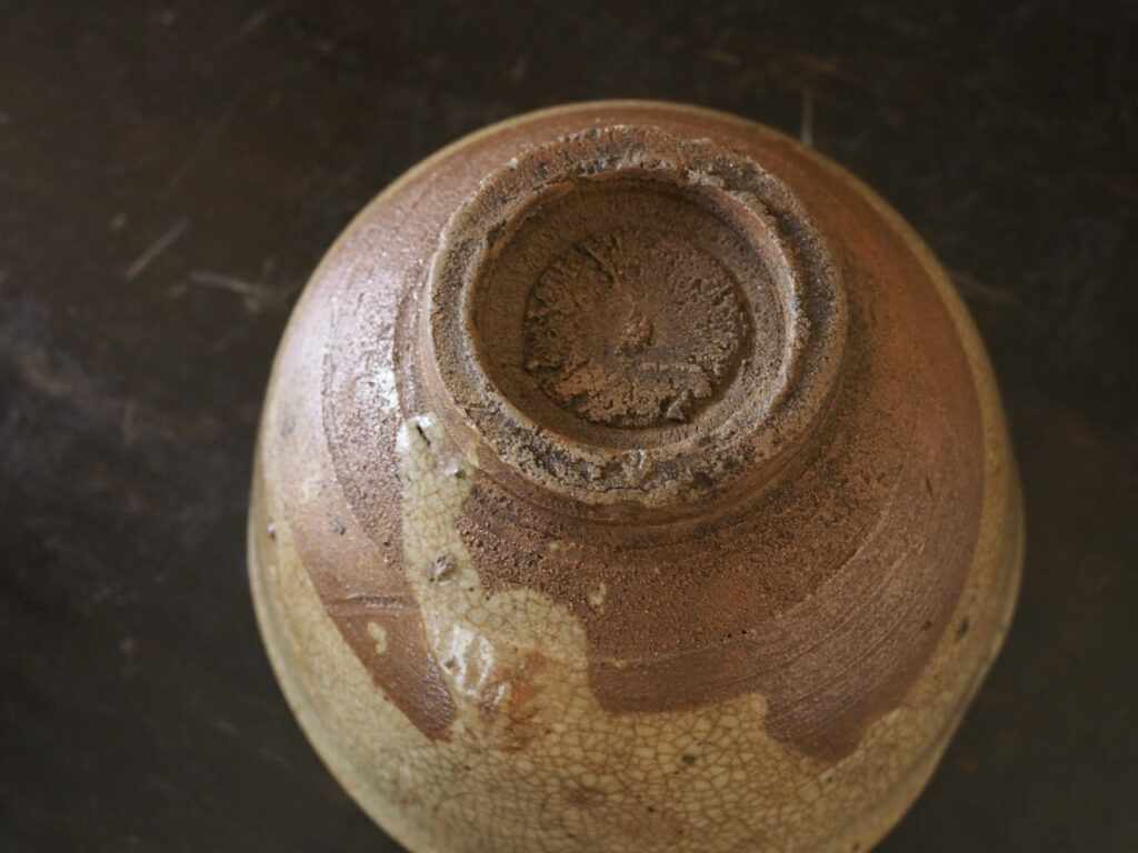 艶のある朽葉色の肌は良い味が付き、赤く焼き上がった土と猛々しい高台削りがこの茶碗最大の