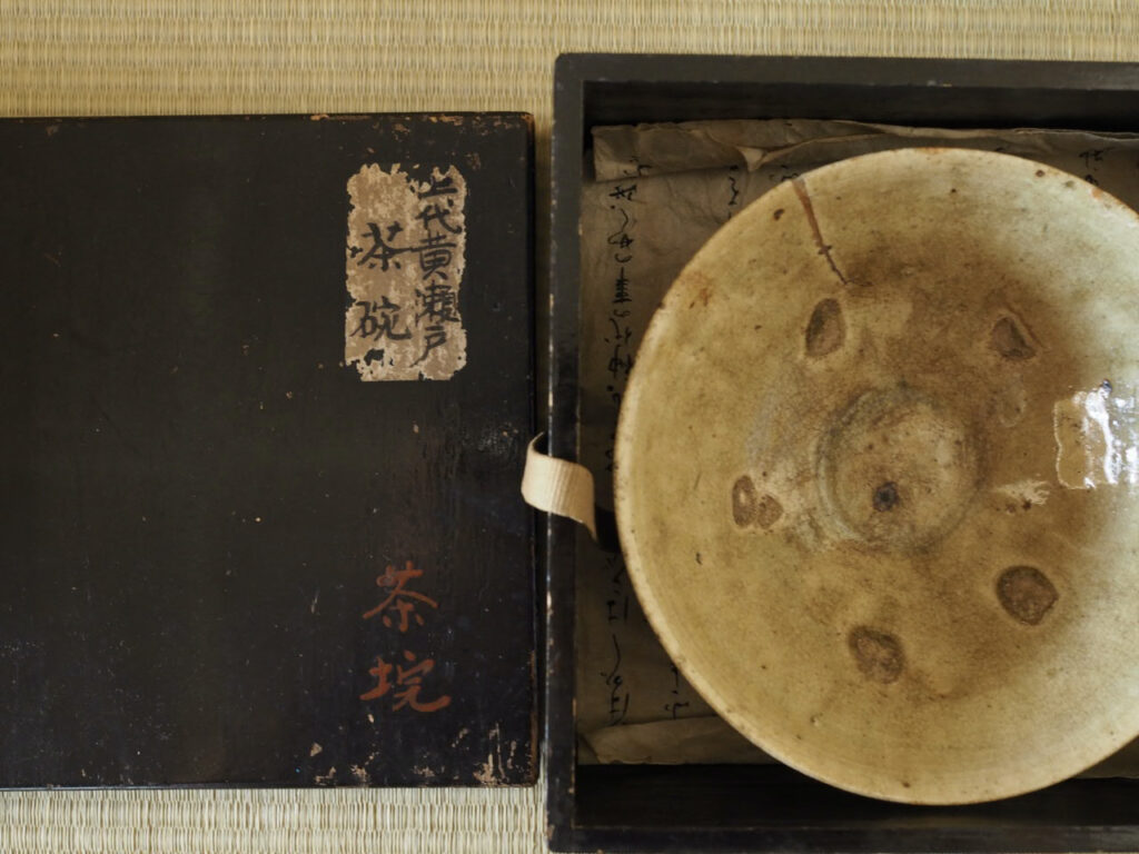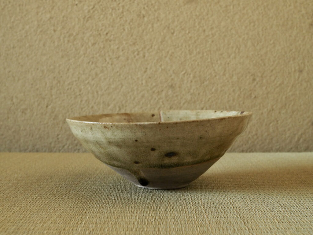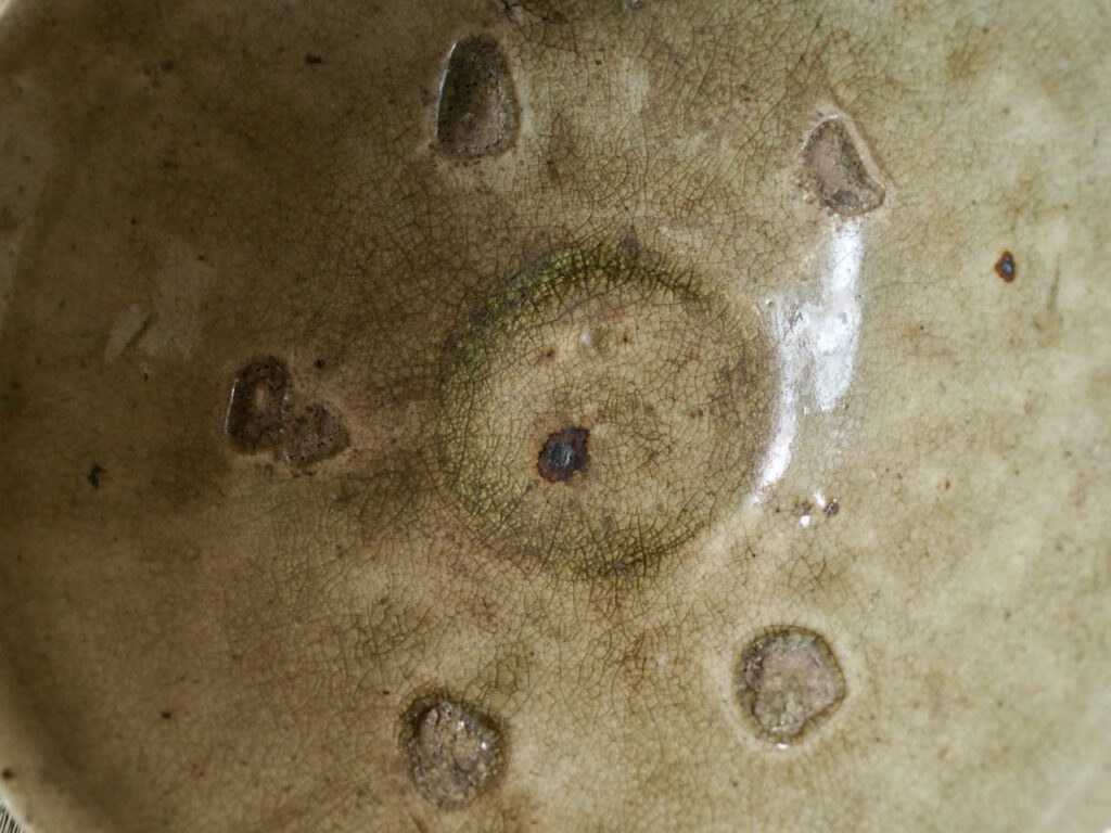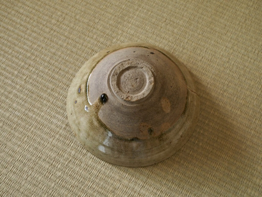 発掘伝世の古瀬戸碗で、内側の目跡の強さとたっぷり掛かった灰釉の猛々しい表情が印象的