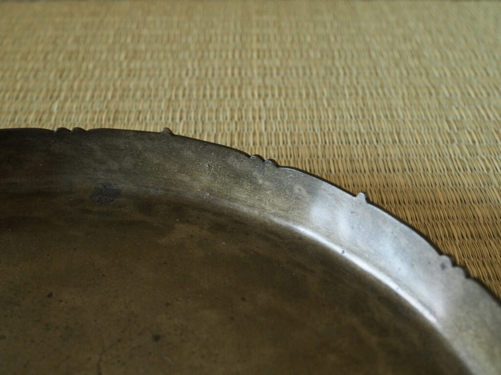 ですが、渋みのある金味がサッパリとした、ちょっと心憎い砂張の菓子盆といえます。