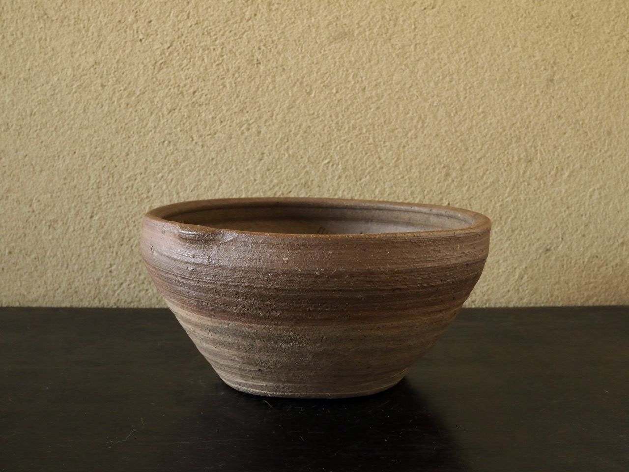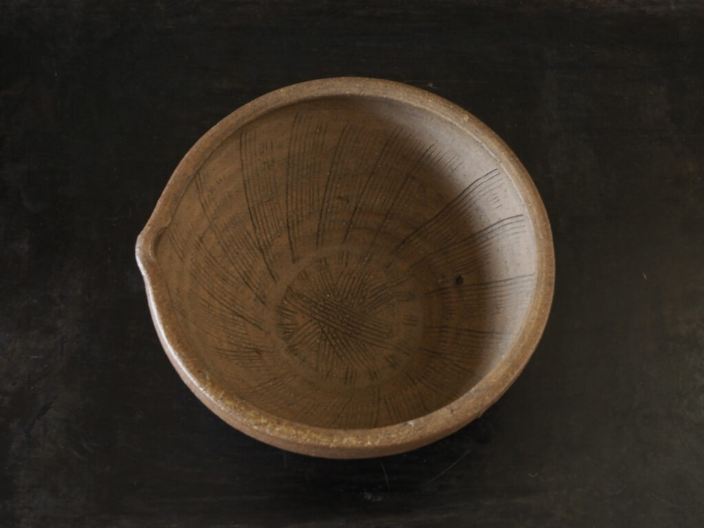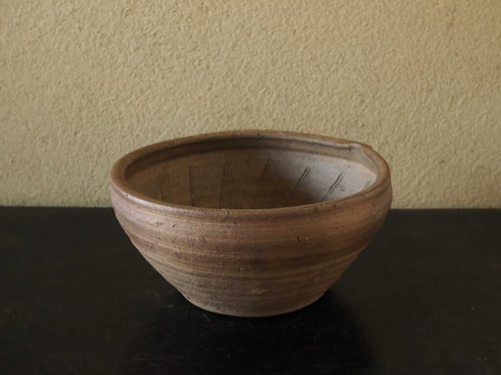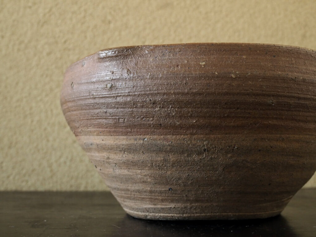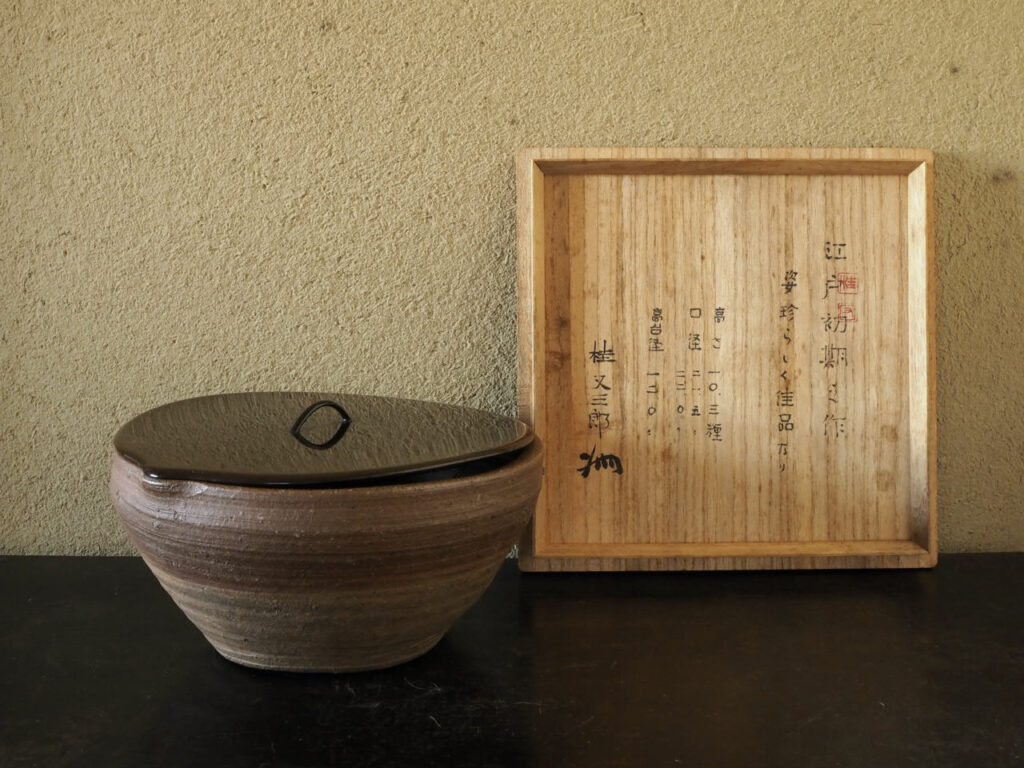 独特の柔らかい肌と内側の櫛目跡の端正な仕事が心地よいリズムを生みます。桂又三郎氏の箱書には