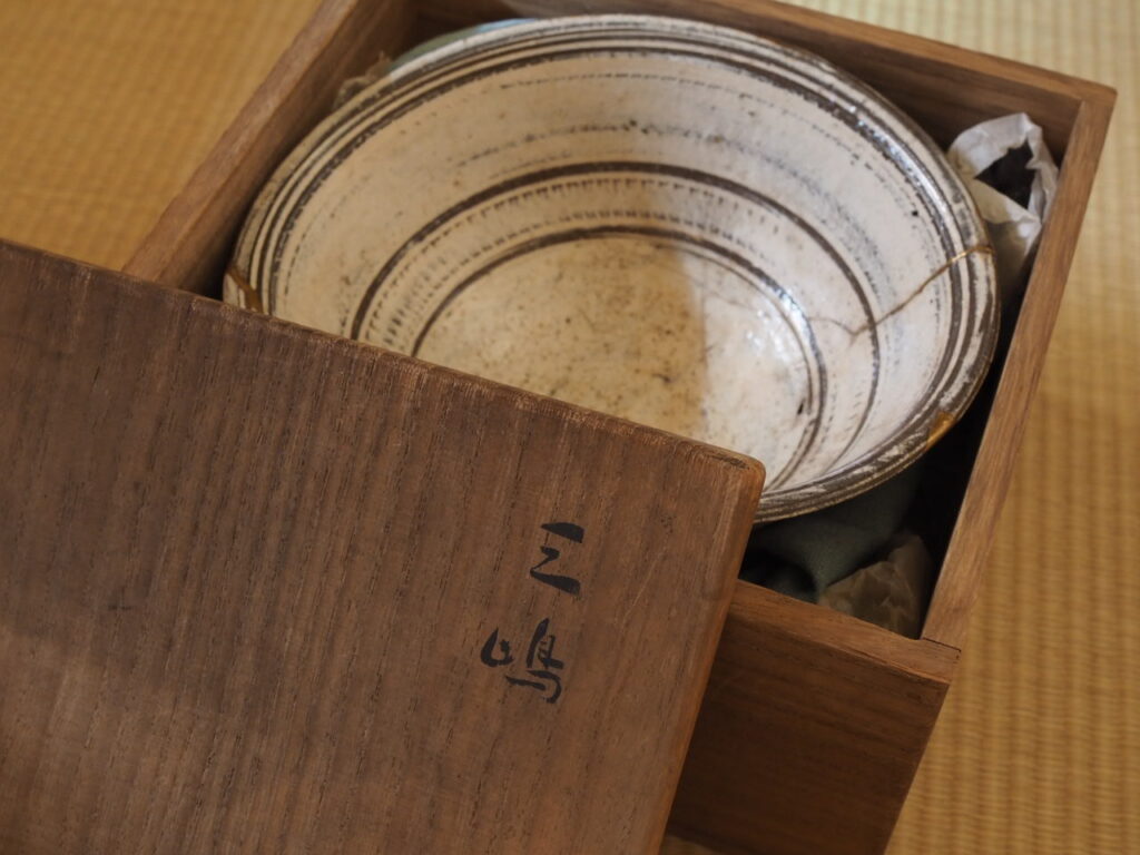 口径16.0〜17.7㎝ 高さ7.5〜8.7㎝ 李朝初期 呼継、金継ぎ 桐箱付