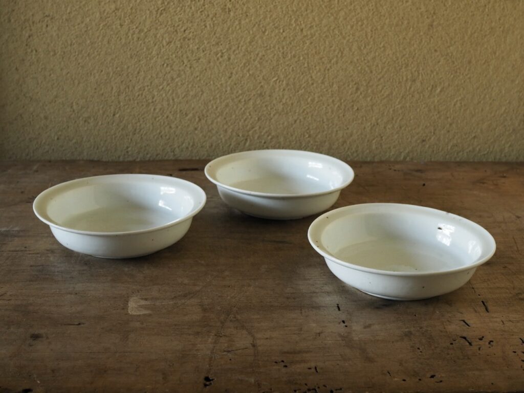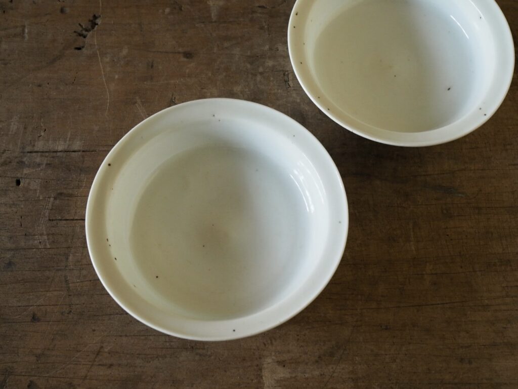 アガリの良い瑞々しい白が大変気持ち良いです。無文様で鍔縁、兜鉢のように深さのあるのも