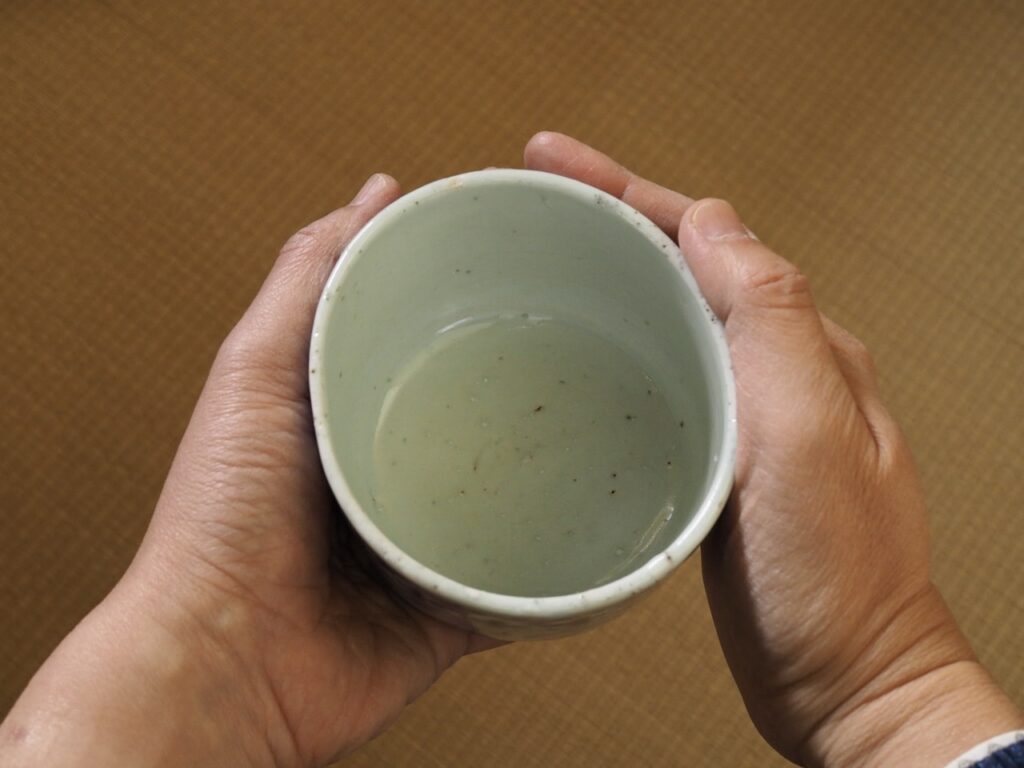 みずみずしく爽やかで、少し歪んだ半筒形が手取りの心地良さを与えてくれる茶碗です。