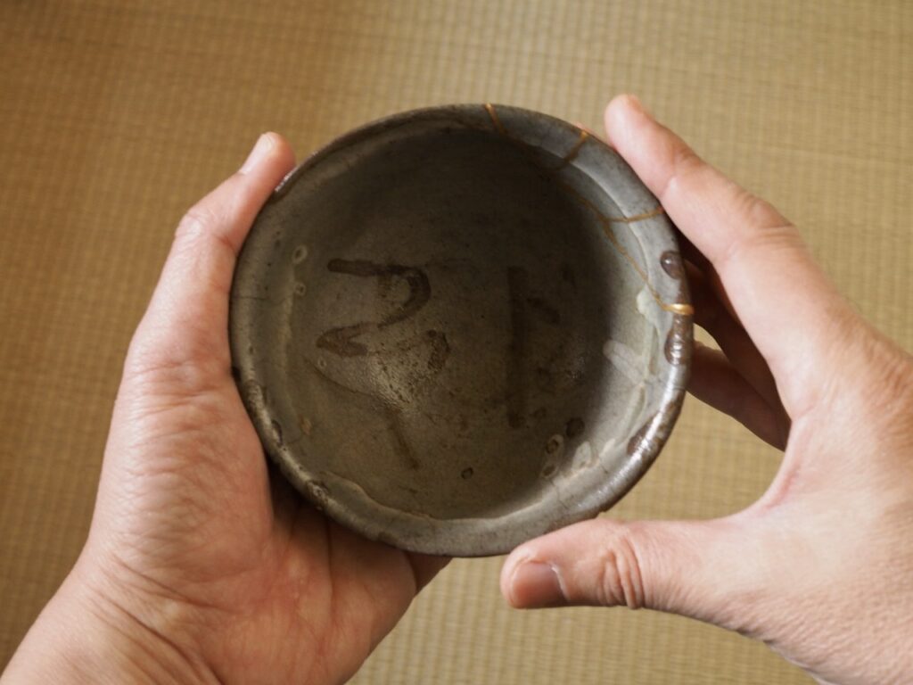 口径10.8〜11.0㎝ 高さ5.5〜6.0㎝ 桃山〜江戸初 金継ぎニュウ 桐箱付