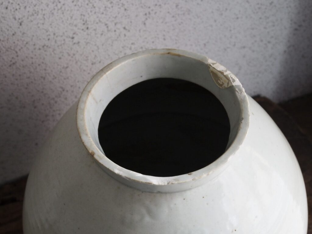 高さ33.0㎝ 胴径29.4㎝ 口径12.7㎝ 李朝後期 口修理、底ニュウ 箱なし