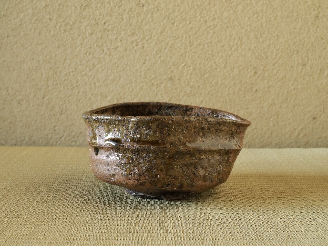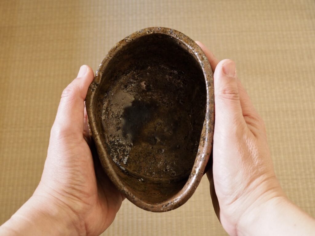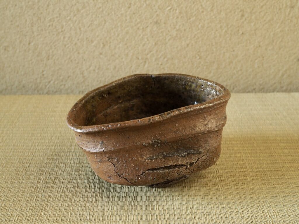 美濃焼の影響を感じられる豪快な造形に、赤く渋味のある土味が印象的です。暗緑色の