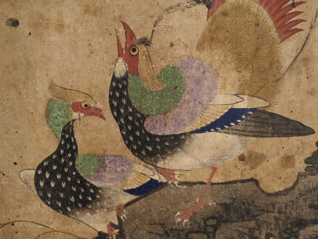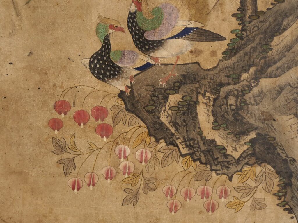 本紙68.2×37.6㎝ 額装86.8×55.0㎝ 紙本着色 李朝後期 修理有 紙箱付