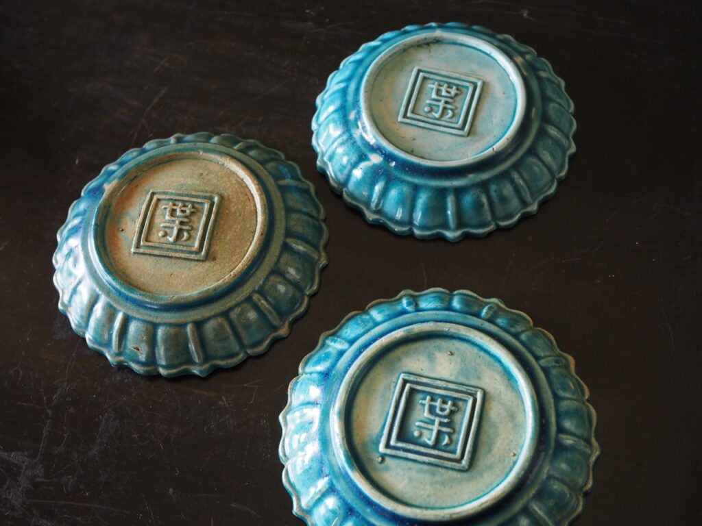 中国南方で焼かれた、型物香合でお馴染みの交趾焼小皿です。小品ながら大陸的厳しさを顕す
