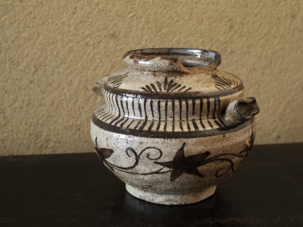 下段にはお馴染みの蔦唐草が、鉄絵の発色良く表されます。美濃物には少ない袋物しかも耳付の